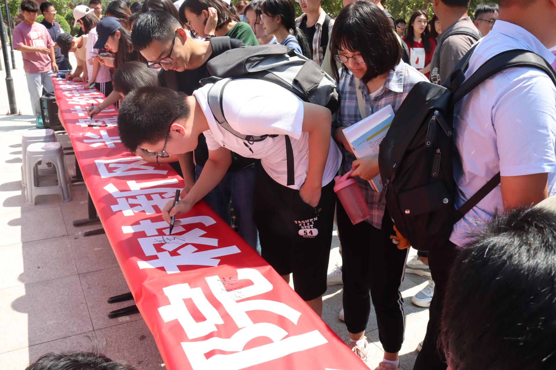 活动当天有400余人参与,并加入“诚信交院树新风、光盘节约我践行”主题教育微信群,大家在群内积极转发“制止餐饮浪费”的评论文章。同时,参与活动的师生在横幅上郑重签上自己的名字,承诺做“诚信交院光盘行动的践行者”。