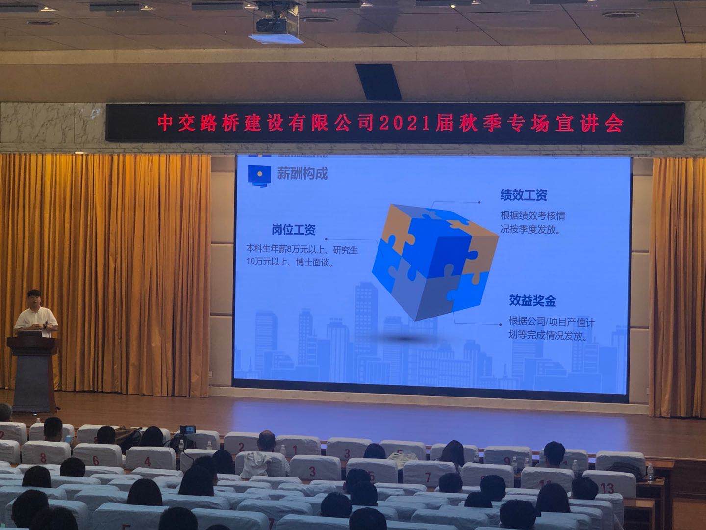 近日,中交路桥建设公司宣讲会在长清校区学术报告厅举行,这是疫情防控常态化情况下,学校举办的首次线下招聘活动,本次招聘也拉开了新学期学校招聘月的序幕。