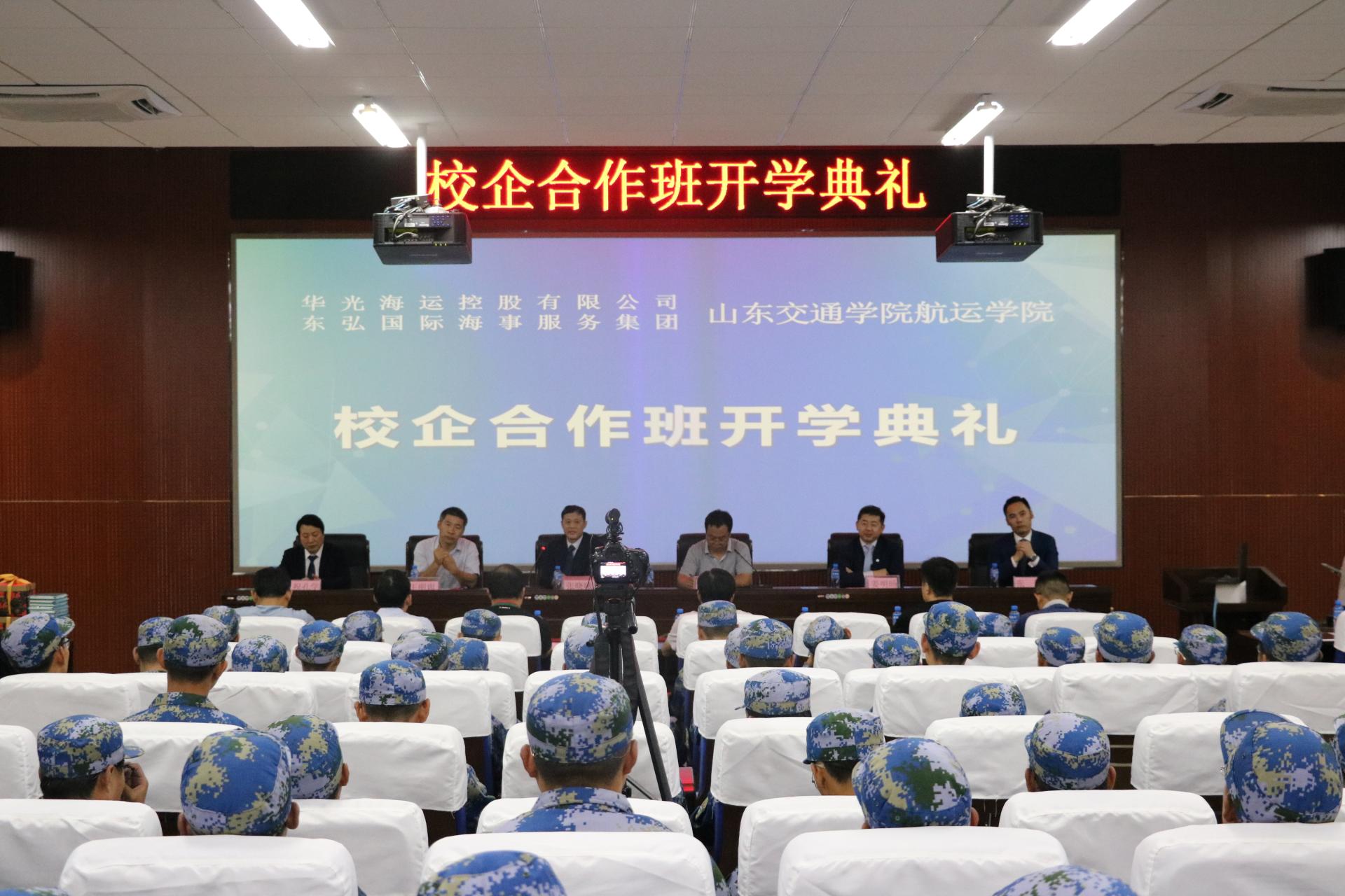 9月23日下午,航运学院校企合作班开学典礼在威海校区第二报告厅举行,华光船务管理(香港)有限公司执行总经理张晓曦,东弘国际海事服务集团董事长姜明旸、培训总监张伟,山东交院华光海运液运培训中心总经理祝孔学,航运学院分党委书记陈海泳、院长王明雨参加开学典礼。