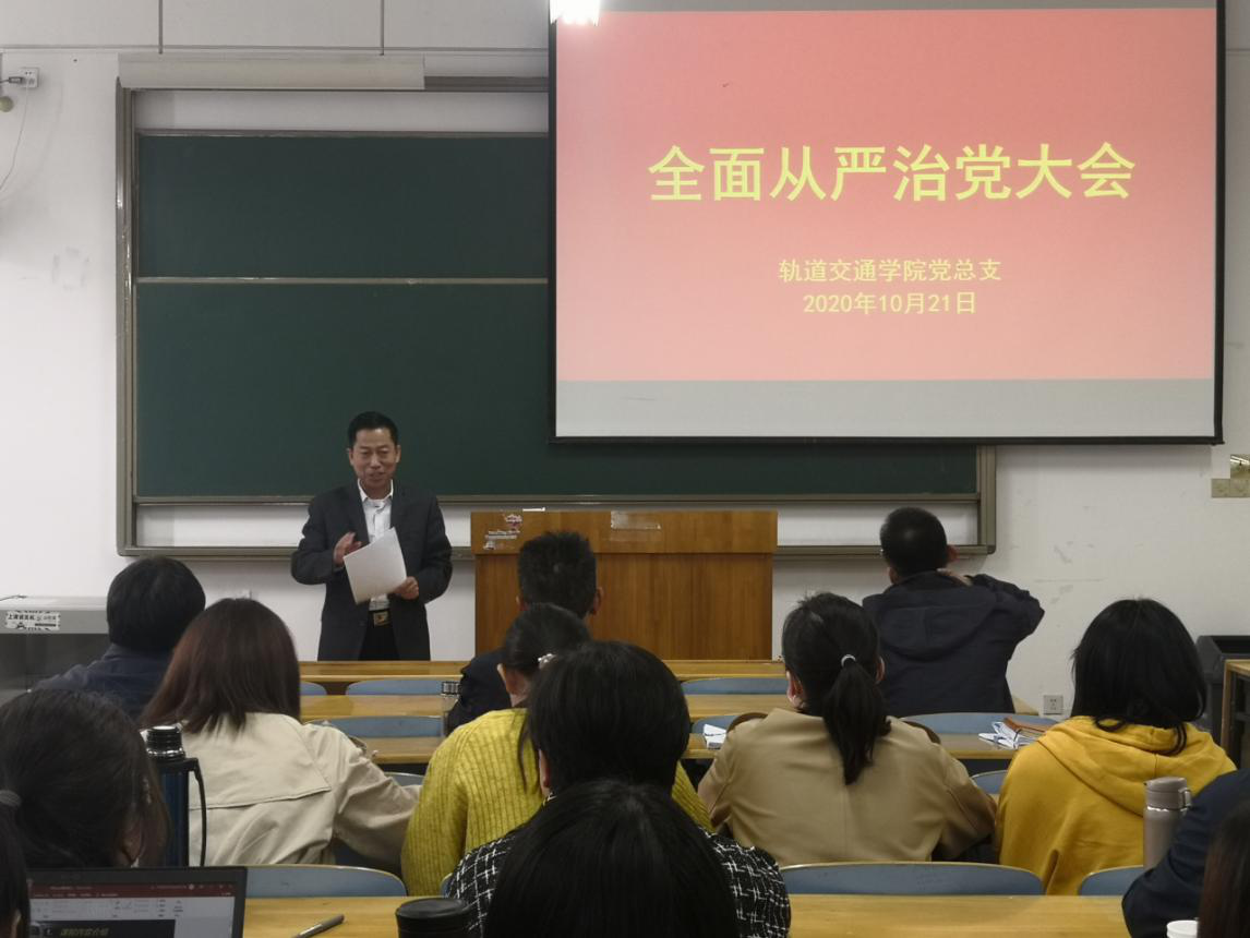 为贯彻落实上级党委关于全面从严治党部署要求,迎接学校第三次党代会胜利召开,10月21日下午,轨道交通学院党总支举行全面从严治党专题会议。