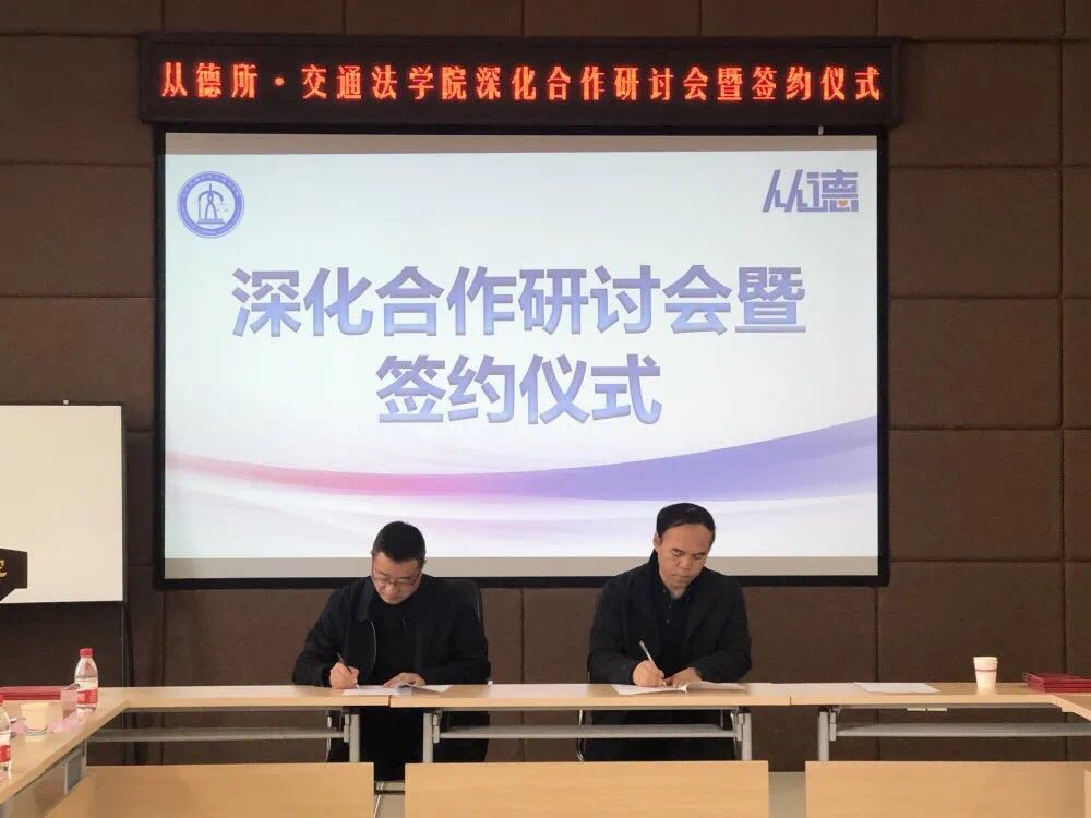 11月2日下午,交通法学院在长清校区与山东从德律师事务所举行深化合作研讨会暨签约仪式。