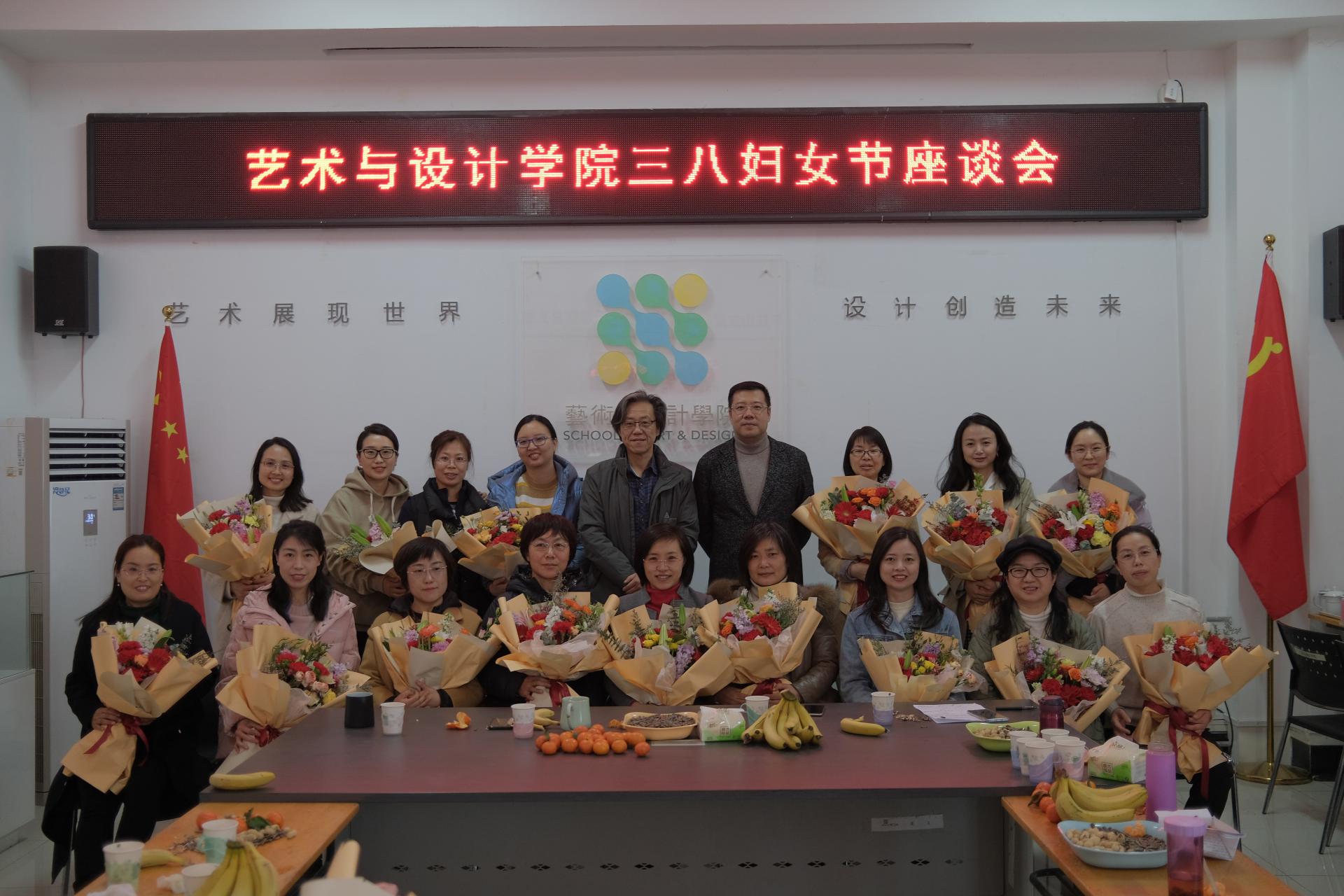 艺术与设计学院召开了“三八”国际妇女节座谈会。会上,学院领导班子代表学院向全院女教职工致以节日的祝贺,感谢她们在学院各项工作中所作出的杰出贡献,并为她们送上鲜花。与会女教职工结合自身实际,从工作、事业和家庭等方面交流工作经历和感悟,纷纷表示今后将努力工作,更好发挥“半边天”的作用,为学校和学院的发展贡献力量。活动中还穿插了演唱、朗诵等娱乐活动,活动现场氛围温馨愉快。