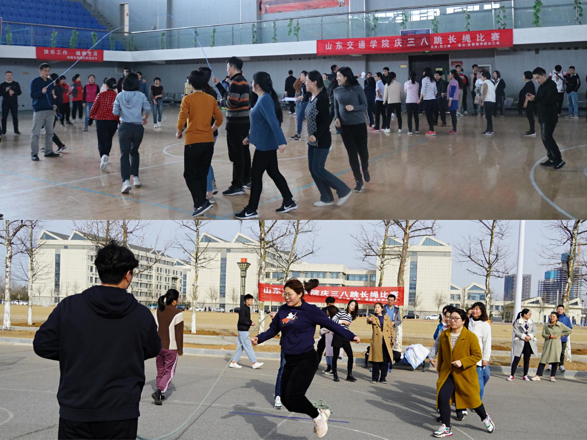 3月17日下午,由校工会(妇委会)主办,体育教学部、基础教学部承办的“三八”节系列活动跳长绳比赛分别在长清校区体育馆和威海校区篮球场举行。
