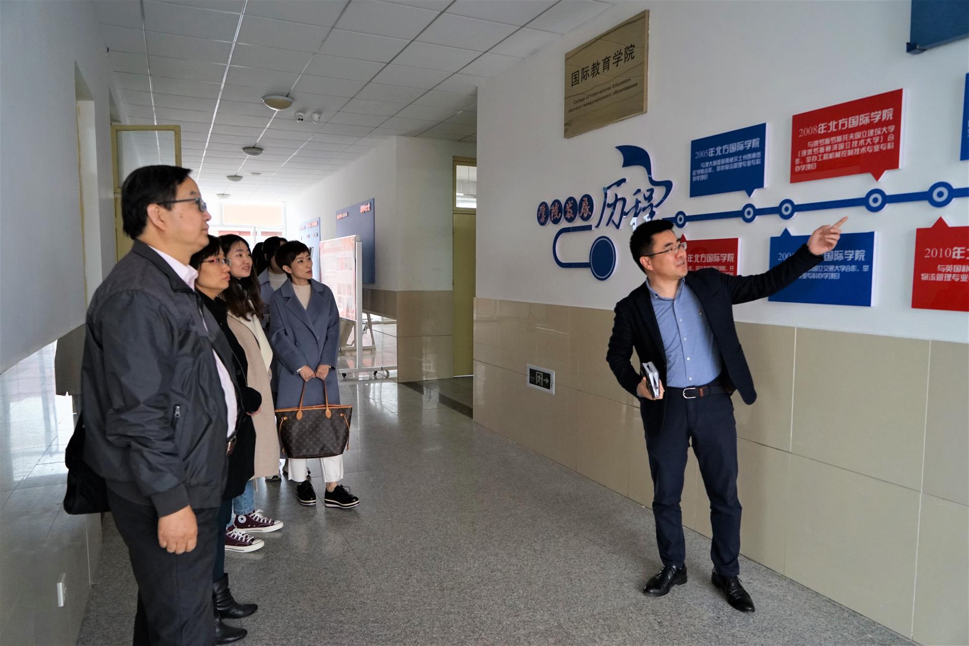 会上,刘春光对山东建筑大学和滨州学院一行的到访表示欢迎,并对学院中外合作办学项目、机构运行、留学生日常管理与教育等基本情况进行了介绍。他表示,今后将加强与两所高校在中外合作办学及留学生教育与管理领域的交流,分享经验,相互学习,共同探索发展的新方法、新路径。