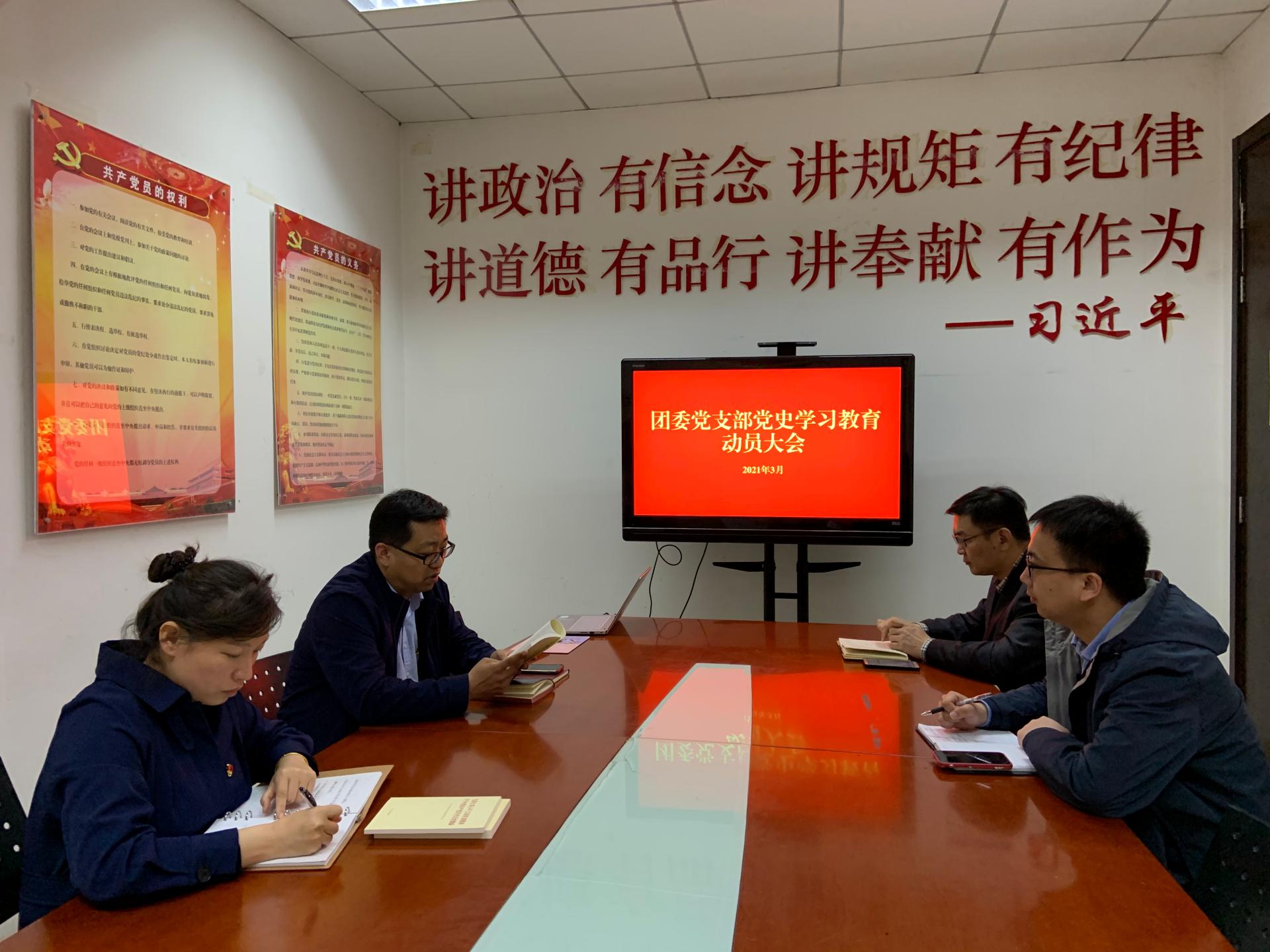 近日,团委党支部在体育馆A111会议室召开党史学习教育动员会,党支部全体党员参加会议。会议由团委党支部书记吴硕主持。
