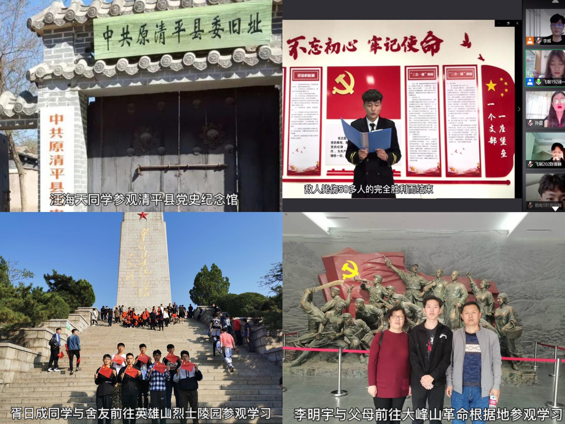 “团课我来讲”主题云团课,让党员、团员学生与红色精神同向同行。学生党员、学生团员积极参与云端分享。飞行202班组织委员李明修作了题为《浸润在新时代的红色文化》视频宣讲,他利用假期前往抱犊崮八路军115师纪念馆,换上军装、手握红旗、军事演练、忆苦思甜,沉浸体验八路军革命历程之艰辛。飞制192班班长胥日成和舍友前往英雄山烈士陵园参观学习。胥日成说,“通过实地参观,真切地感受到革命先烈们的英雄气概,深刻体会到了今天生活的来之不易”。飞行201李明宇和父母一起前往大峰山革命根据地纪念馆,他说,“父母重温入党誓词,我在一旁深受感动和鼓舞,我也要想像父母一样,努力为社会贡献自己的力量,积极向党组织靠拢。”学院组织学生党员志愿者,践行我为群众办实事。五一假期前往济南市历城区图书馆参加青鸟计划文化志愿实践活动,在服务中践行青年使命。学院新时代志愿文明团队,深入济南兴福街道党群服务中心开展“筑梦·追梦·传梦”中国共产党领导下的航空史宣讲活动,志愿者在云端也畅谈了服务心得。