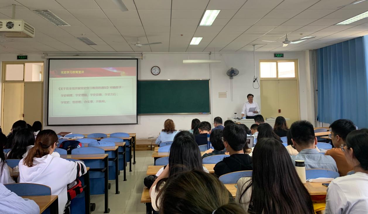 近日,外国语学院在教学楼2A103开展党史学习教育宣讲,学院党委书记马昭以《从党的百年历史中汲取智慧和力量 在新的奋斗征程中挥洒青春与汗水》为题,为学院全体党员作党史学习教育宣讲。
