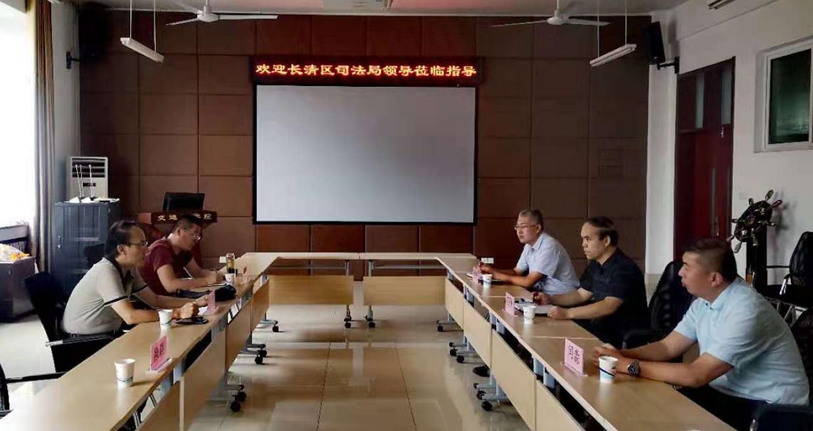 近日,长清区司法局副局长孙力、法律援助中心主任殷光东来我校调研法律援助志愿者队伍建设情况,交通法学院党总支书记闫淼、院长范冠峰参加座谈会。