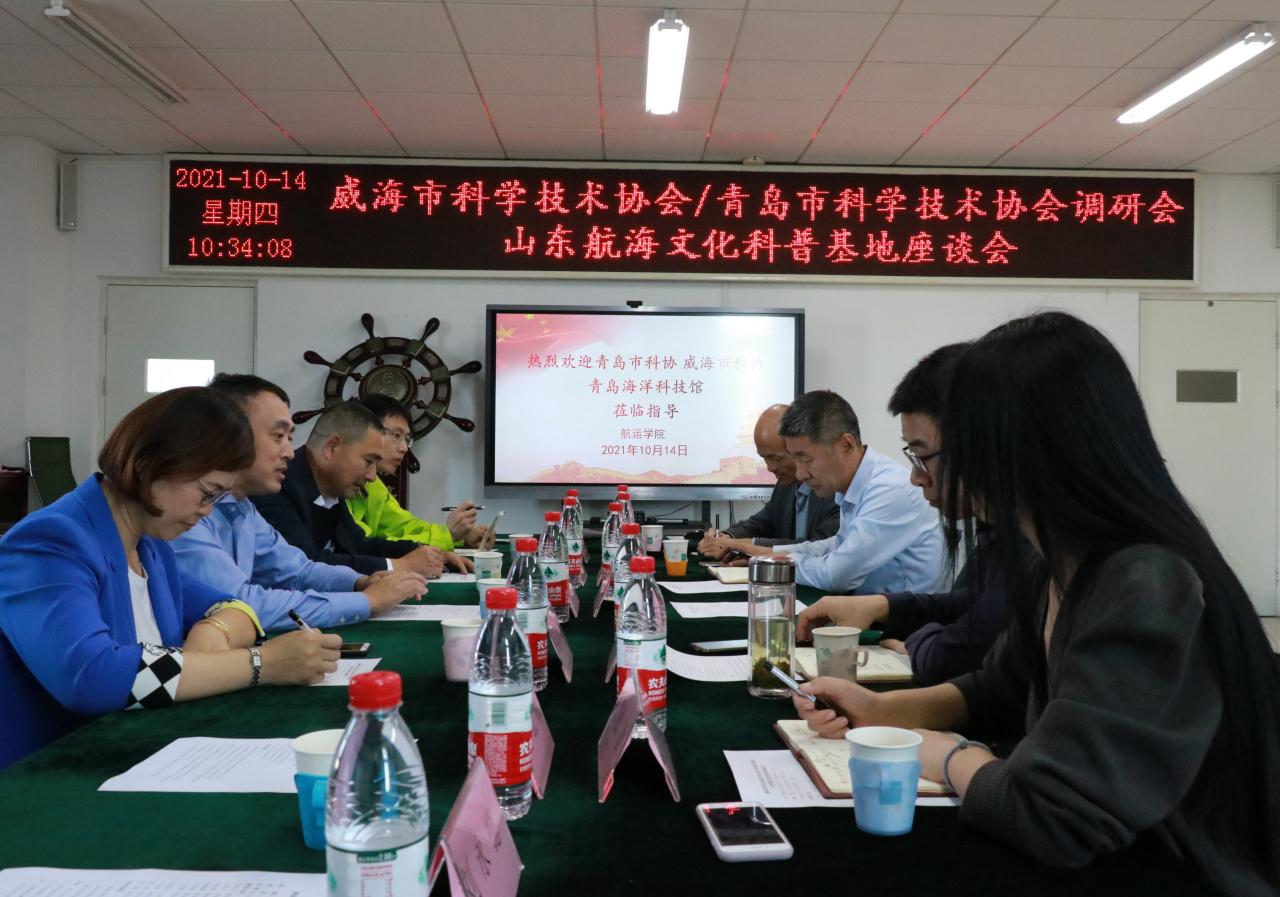 10月14日,威海市科协技术协会、青岛市科学技术协会、青岛海洋科技馆一行6人到我校威海校区山东航海文化科普基地调研座谈。科普基地负责人、航运学院院长王明雨参加并主持会议。