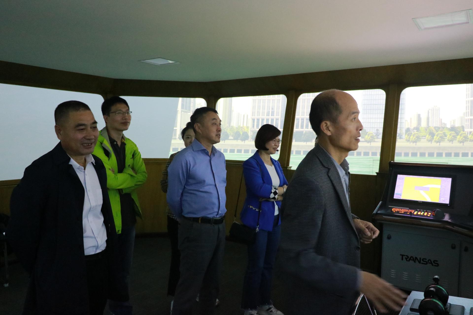 山东航海文化科普基地教师汪运涛带领来访人员先后参观了航海模拟驾驶台、山东省船舶防污染重点实验室、气象观测场等科普场地。