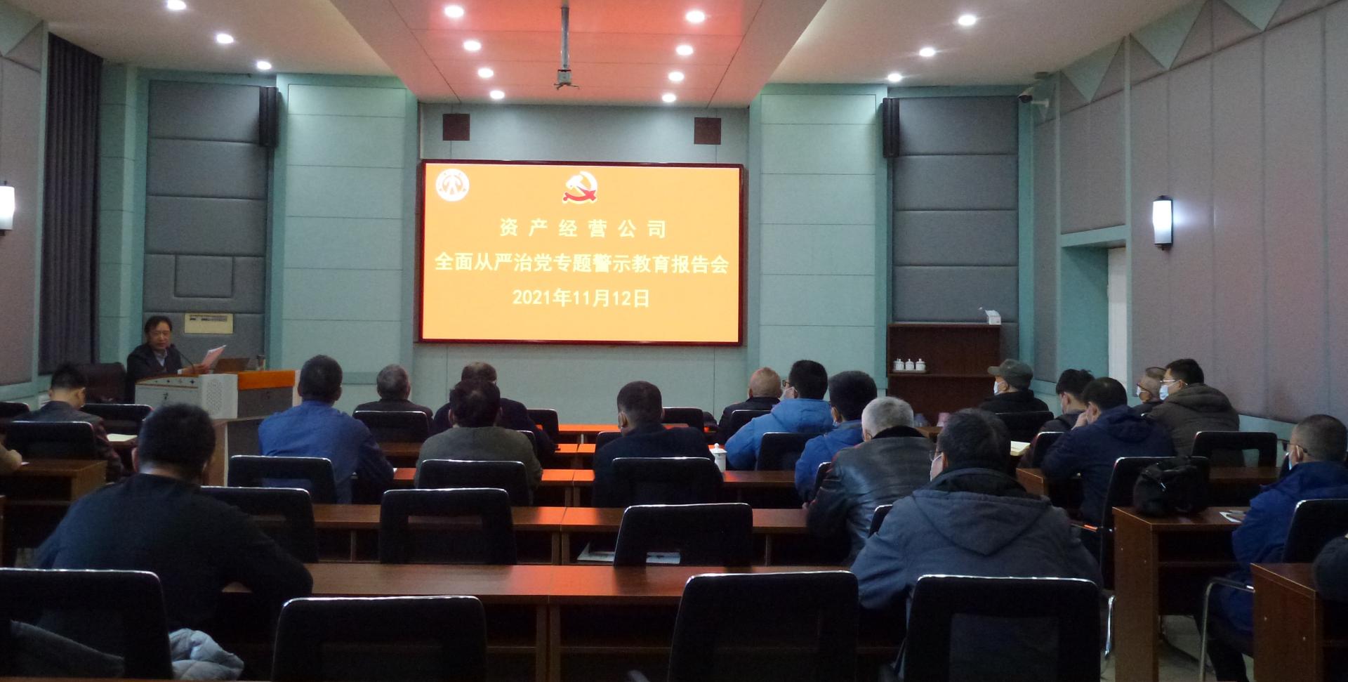 11月12日上午,资产经营公司党委举办全面从严治党专题警示教育报告会,邀请学校纪委副书记程伟渊作报告。