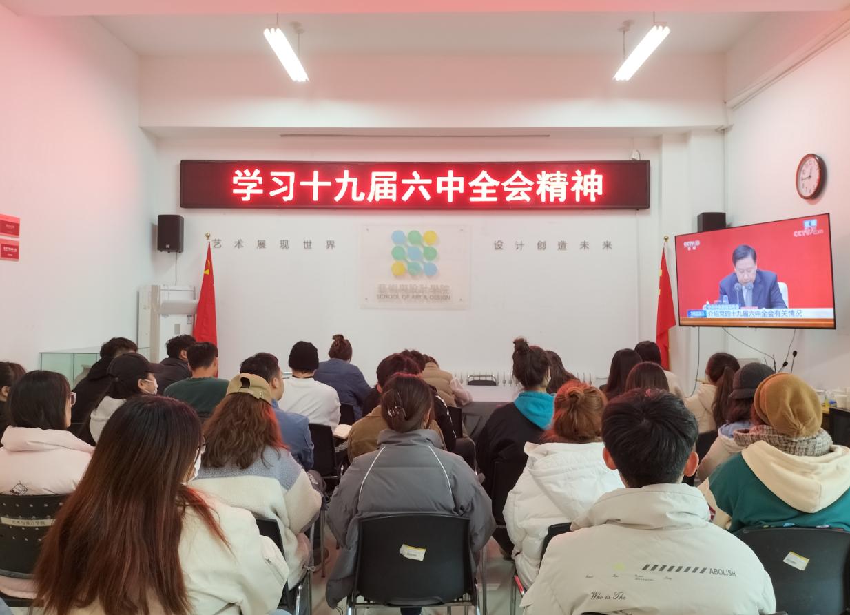 11月12日,艺术与设计学院党委组织师生党员代表集中收看党的十九届六中全会新闻发布会直播,听取了《中共中央关于党的百年奋斗重大成就和历史经验的决议》内容的解读。广大党员表示,要继续深入学习贯彻党的十九届六中全会精神,进一步提高政治站位,切实把思想和行动统一到全会精神上来,切实把学习成果转化为干事创业的实际行动。