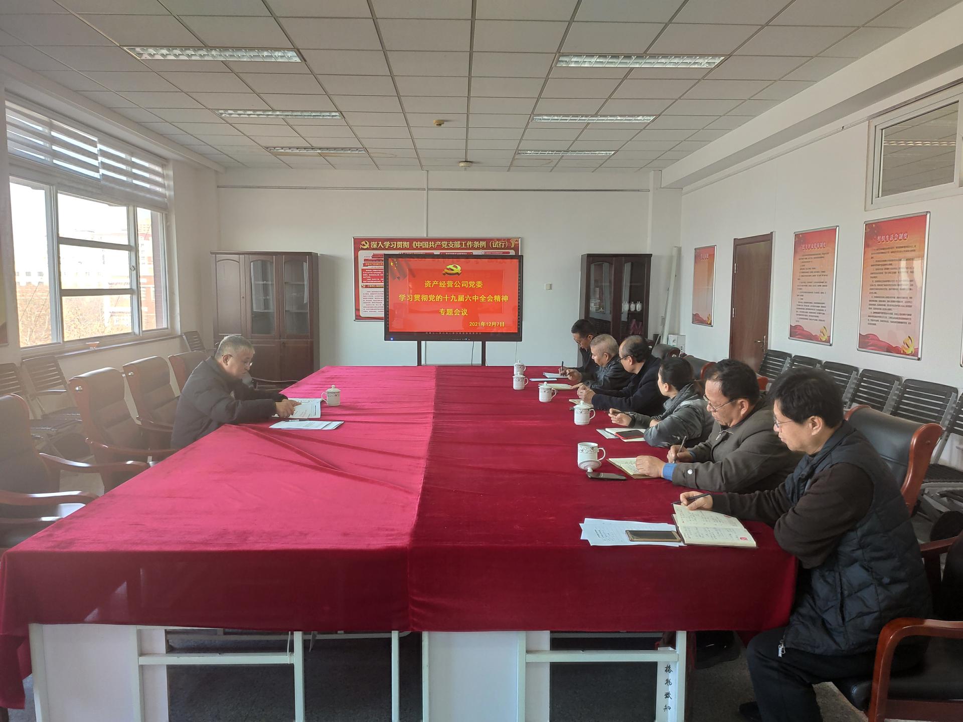 资产经营公司党委在无影山校区图书楼召开党的十九届六中全会精神专题学习会议,会议由资产经营公司党委副书记冯传荣主持。