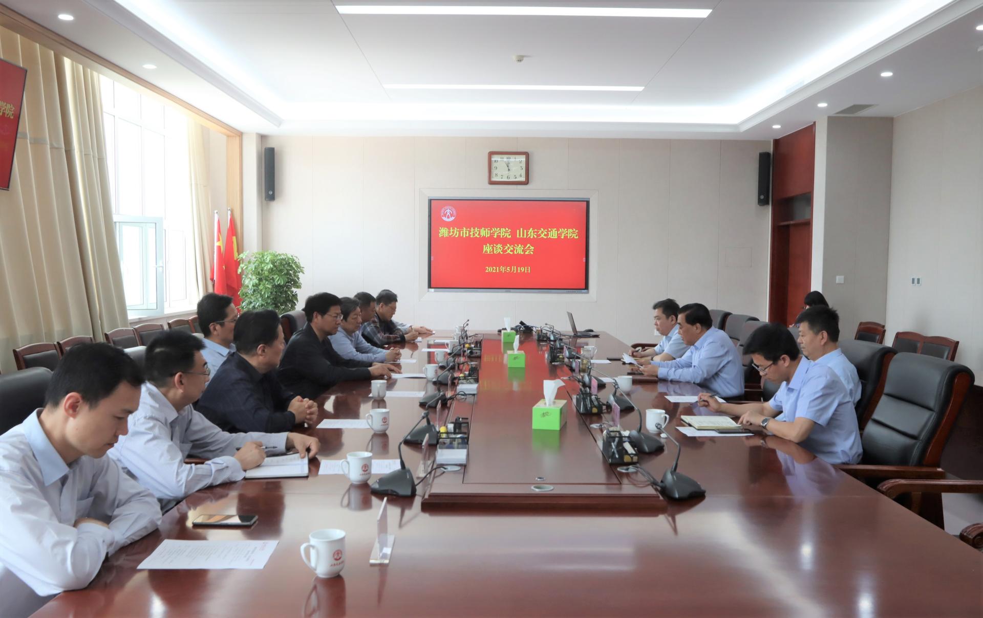 5月19日上午,潍坊市技师学院院长丁汉邦一行9人来校调研,学校在在长清校区明德楼303会议室举行座谈会。党委书记王焕斌,党委委员、纪委书记、监察专员刘世杰,党委委员、党委办公室(学校办公室)主任、党委统战部部长王晨晖出席会议。会议由刘世杰主持。