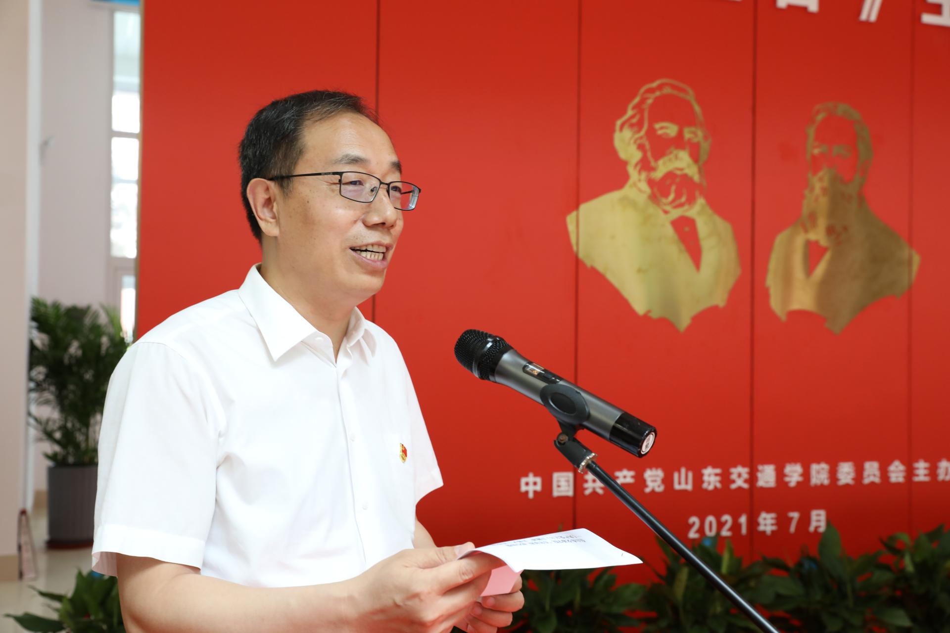 王坦在致辞中表示,举办此次主题展,是深入贯彻落实习近平总书记“把红色资源利用好、把红色传统发扬好、把红色基因传承好”重要指示精神的积极举措,是推动党史学习教育走深走实的重要平台和载体。他希望,学校以主题展开幕为起点,面向社会进行展出,教育引导广大党员干部和青年学子坚定理想信念,筑牢初心使命;进一步加大理论研究力度,全方位梳理《共产党宣言》在中国特别是在山东的传播脉络,为我省党史研究作出更大贡献;加强主题展馆建设,努力打造成为全省党性教育的新高地。