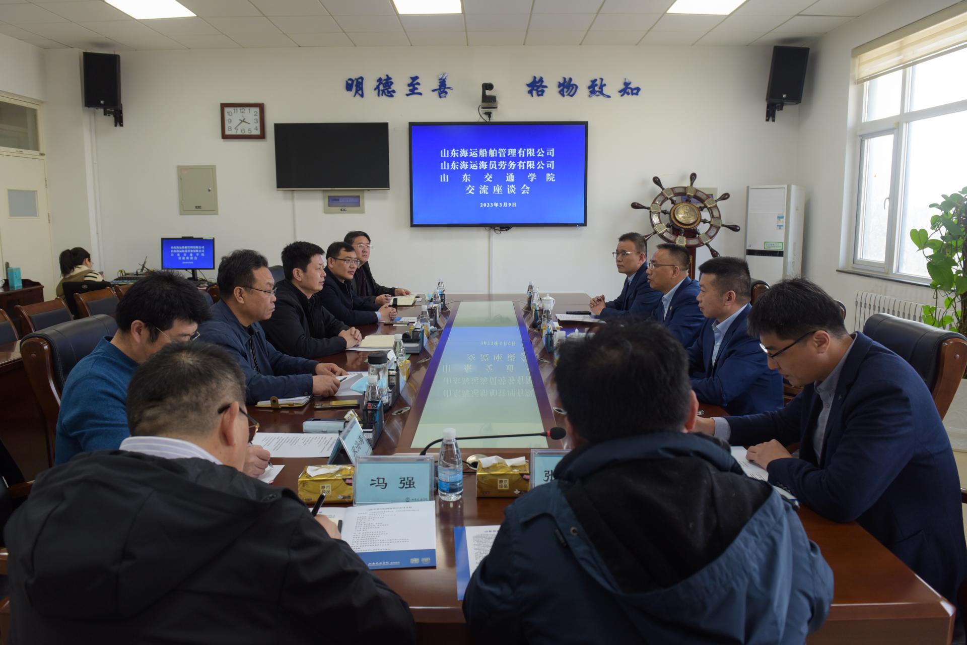 3月9日,山东海运集团下属子公司山东海运船舶管理有限公司、山东海运海员劳务有限公司执行董事、总经理、我校90级校友朱光前一行4人到威海校区交流座谈。威海校区机关党委书记闫栋主持座谈会。