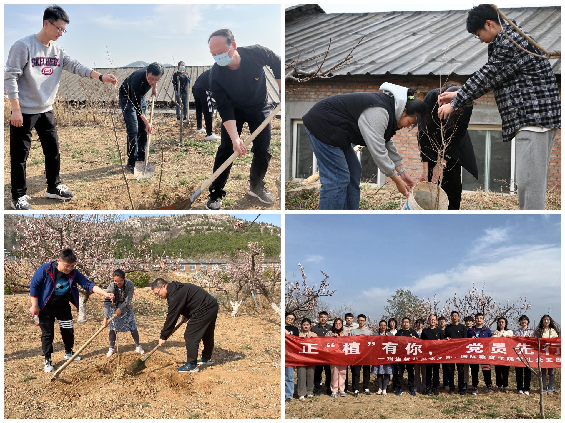 3月10日下午,国际教育学院学生党支部与招生就业处党支部赴长清区恒瑞生态园开展“正‘植’有你,党员先行”主题活动。