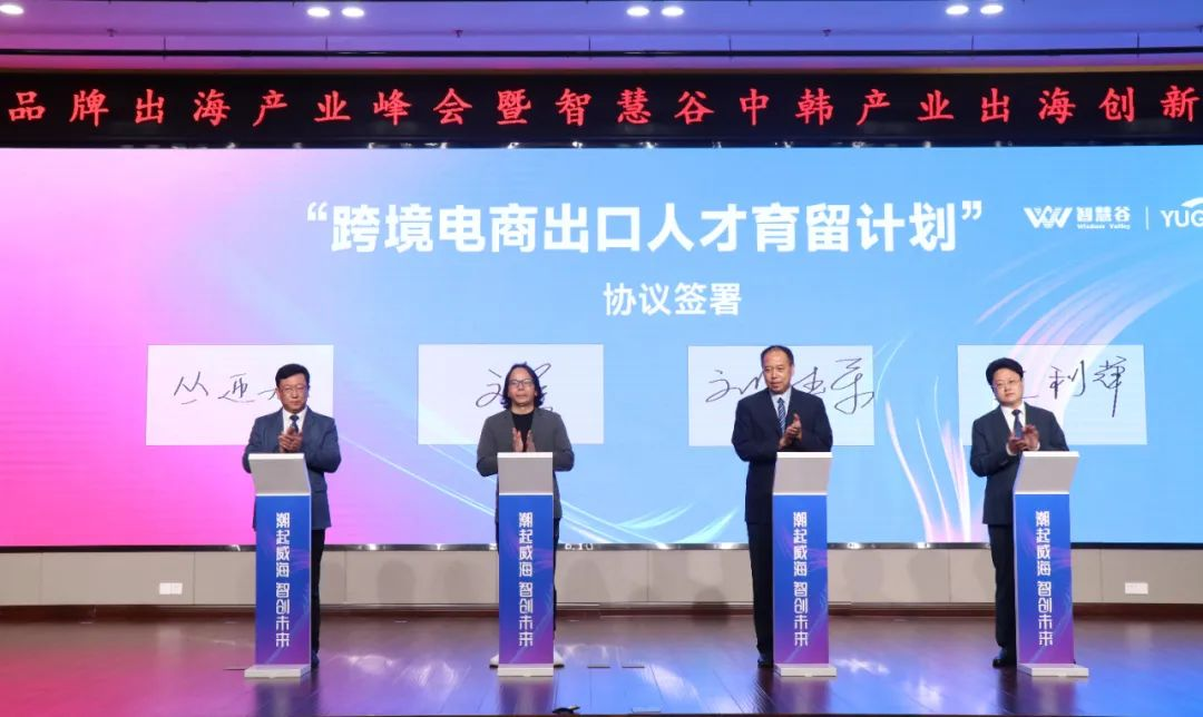 本次峰会聚焦“中韩两国的跨境电商交流与合作”,着力推动威海特色产业带上下游企业实现高效对接、智造出海。活动中,刘佳军与参会嘉宾共同启动“智慧谷中韩产业出海创新创业项目”,签署“威海跨境电商高校人才育留计划”协议,并在巡展中与企业相关负责人深入交流,详细询问参展企业的岗位要求及基本条件,介绍学院专业设置、就业方向等总体情况。