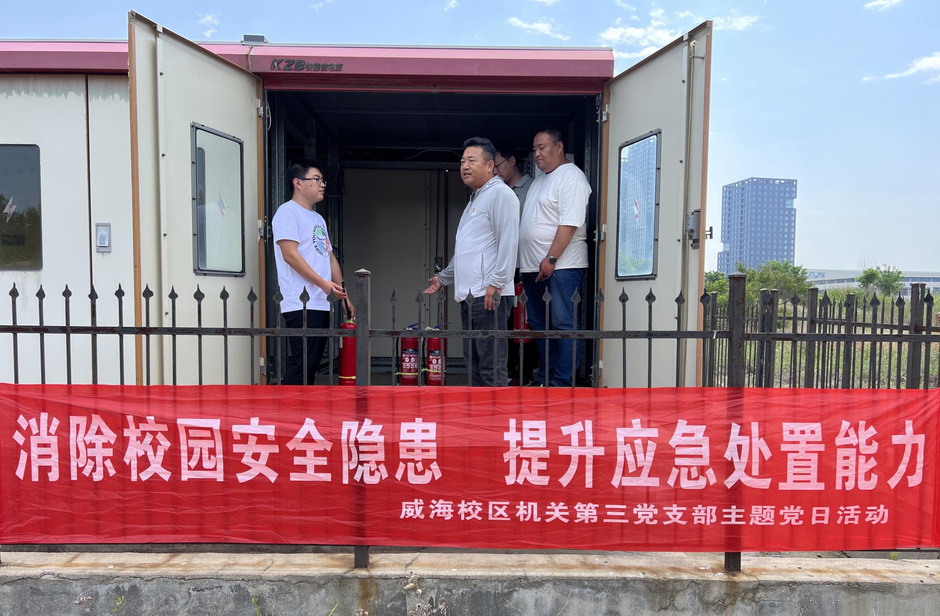 6月7日,威海校区机关第三党支部在威海校区东区变电室组织开展“消除校园安全隐患,提升应急处置能力”主题党日活动。