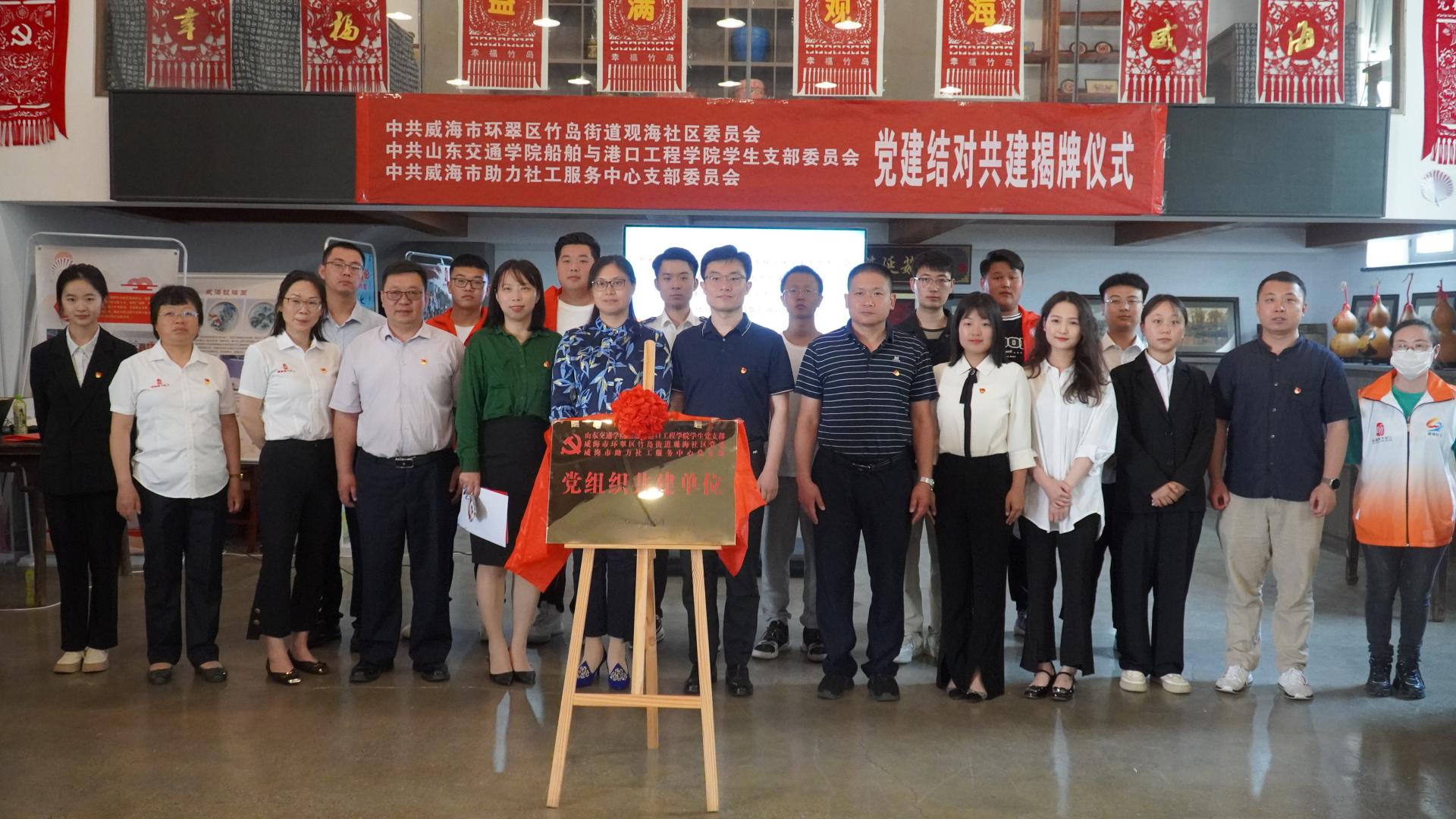 近日,船舶与港口工程学院学生党支部、威海市环翠区竹岛街道观海社区党委、威海市助力社工服务中心党支部举行结对共建签约暨揭牌仪式。威海市环翠区竹岛街道社区综合服务中心主任韩艳艳、观海社区党委书记马楠楠, 船舶与港口工程学院党委书记隋翀、副书记宋新刚参加活动。