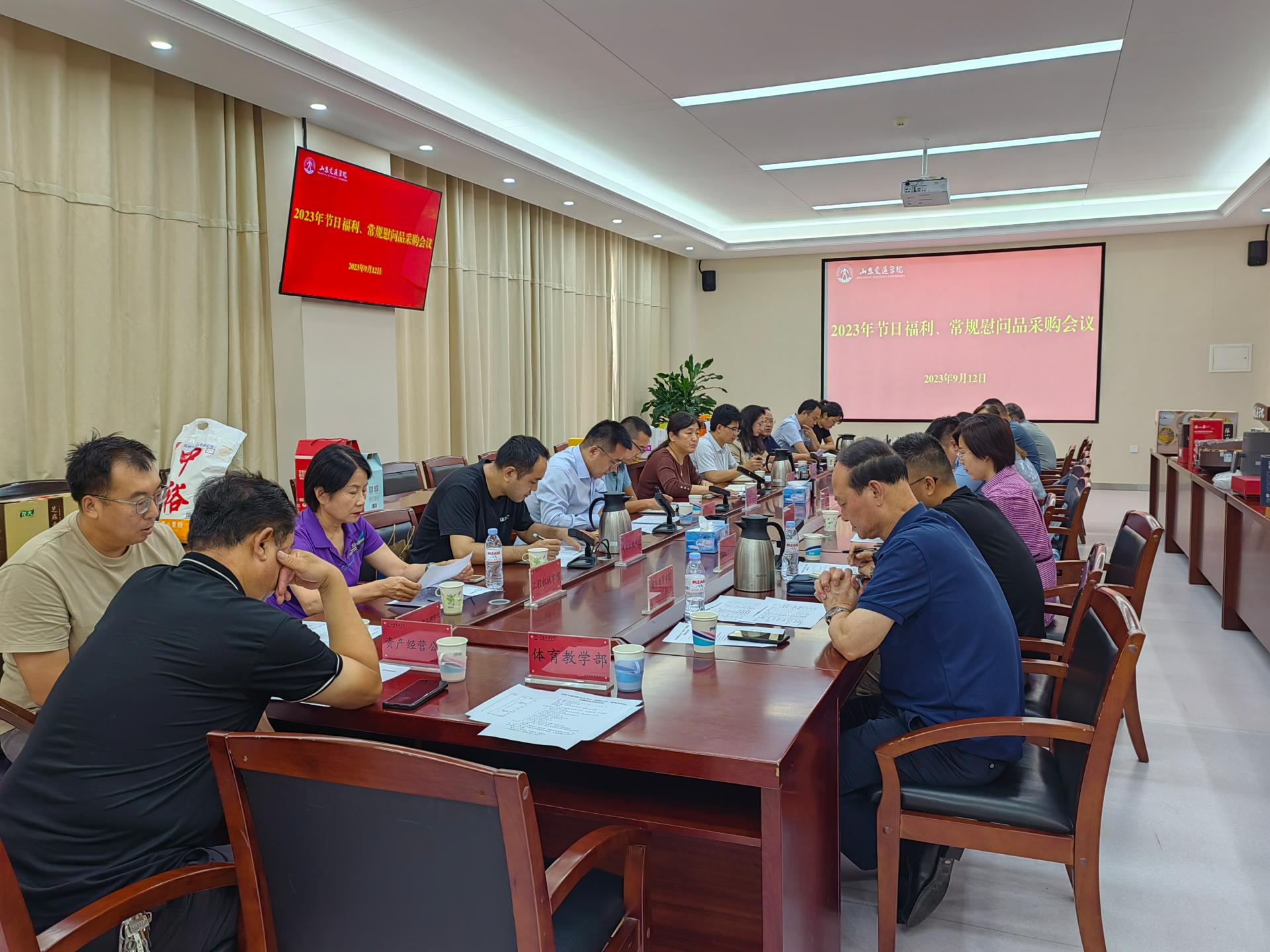 9月12日下午,学校工会(妇委会)在明德楼301会议室召开2023年节日福利、常规慰问品选品会,工会(妇委会)主席闫晓阳主持会议。