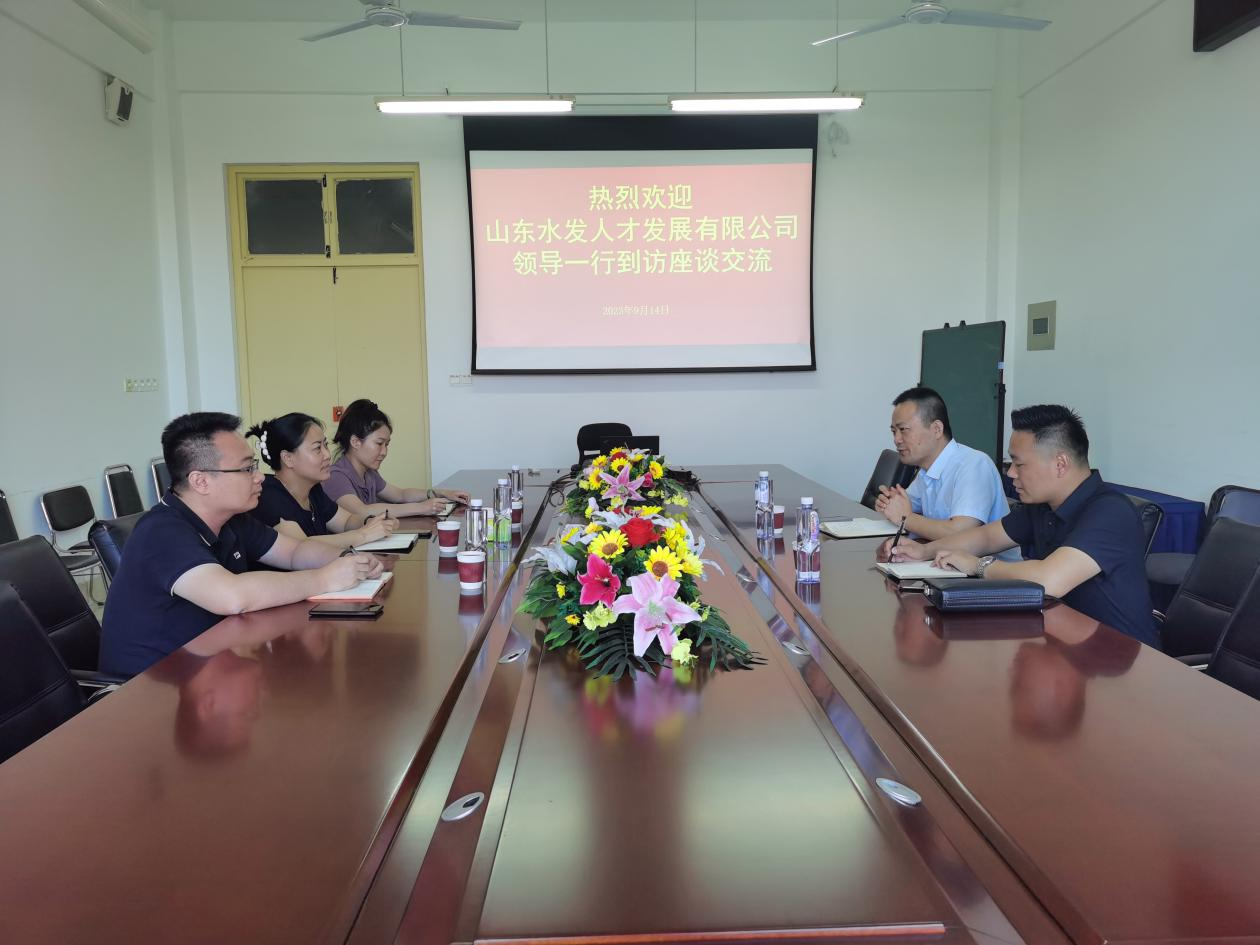 9月14日上午,山东水发人才发展有限公司副总经理常昊一行赴我校外国语学院座谈交流。外国语学院院长宋岩岩、学院党委副书记李筱倩参加座谈。