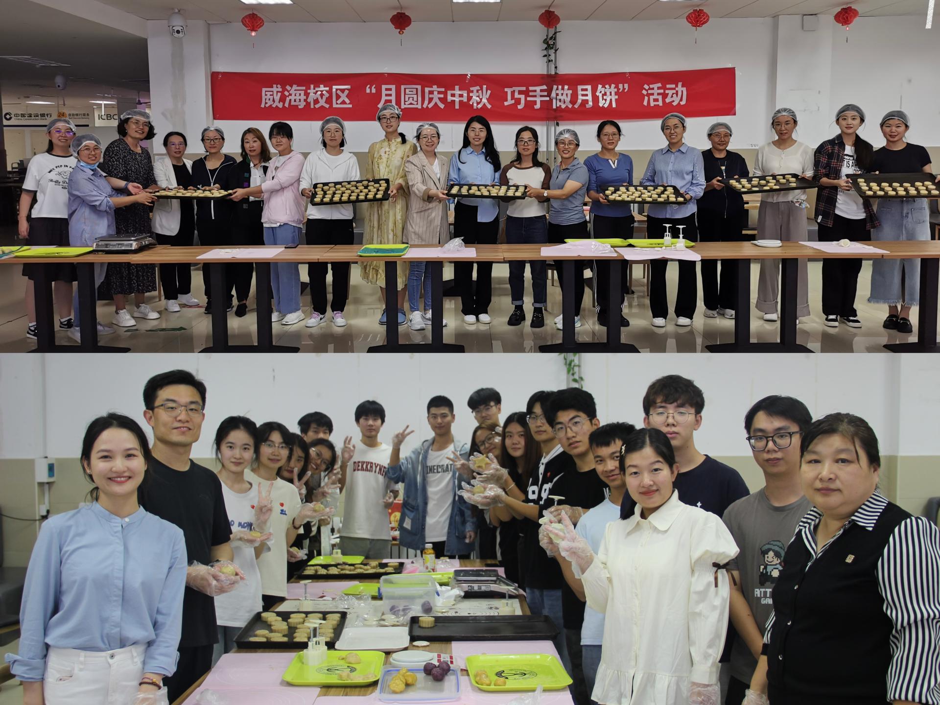 威海校区工会(妇委会)、船舶与港口工程学院分别组织开展了月饼制作活动。活动中,教师们详细了解月饼的制作工艺、手法和技巧,大家互相配合、分工协作,通过擀、推、包、揉等程序,一起体验了亲手制作月饼的乐趣,提前感受到中秋节的暖意。