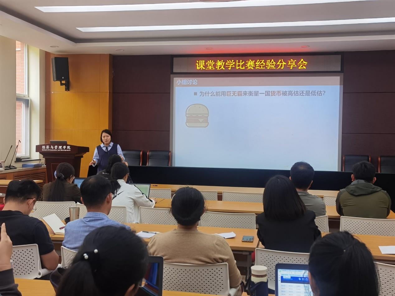 近日,经济与管理学院在教学楼1B104室举办课堂教学比赛经验分享会,邀请山东管理学院经贸学院副教授、山东省第九届“超星杯”高校青年教师教学比赛一等奖获得者白历如作报告。