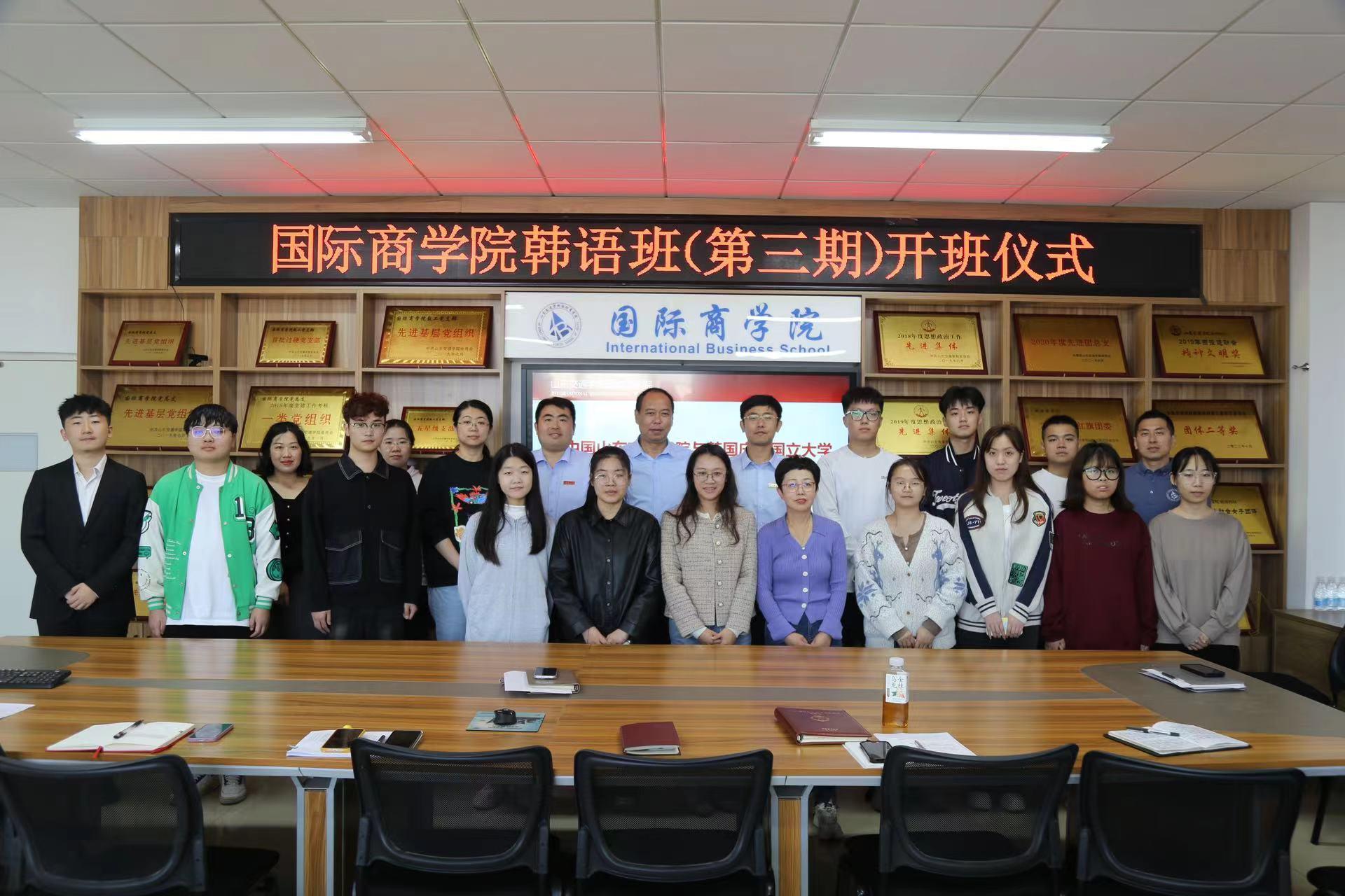10月25日,国际商学院在威海校区二号教学楼B410会议室举办LT.COM乐投与韩国庆尚国立大学本硕连读项目韩语班(第三期)开班仪式,国际商学院党委书记刘佳军、副院长孙龙,教师代表及韩语班(第三期)全体学生参加活动。