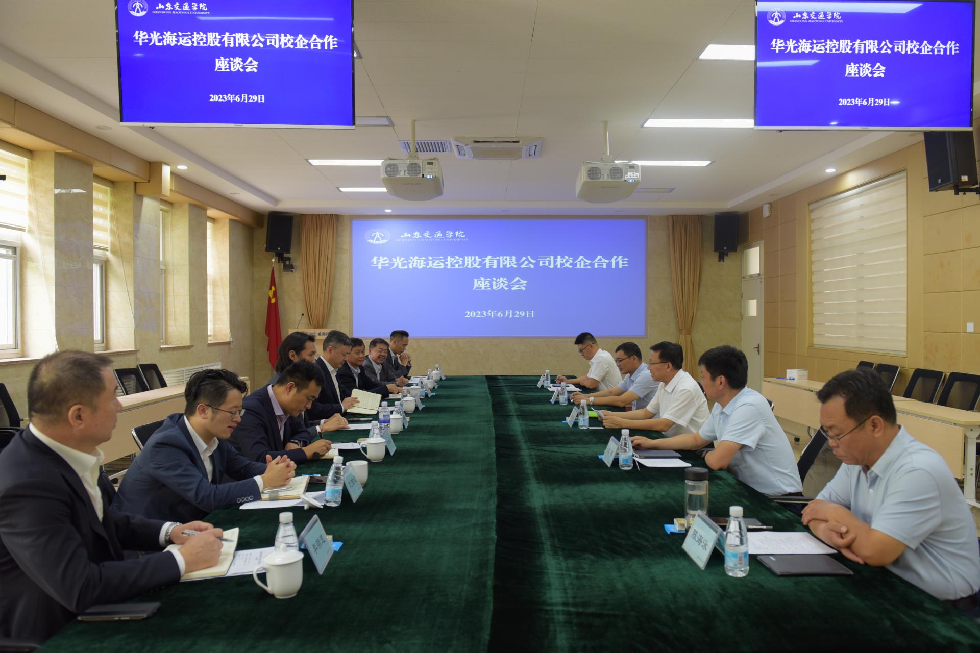 6月29日,华光海运控股有限公司董事长赵式庆、东弘国际海事服务集团董事长姜明旸等一行8人来我校威海校区走访交流。学校党委委员、副院长姜华平主持并出席座谈会。