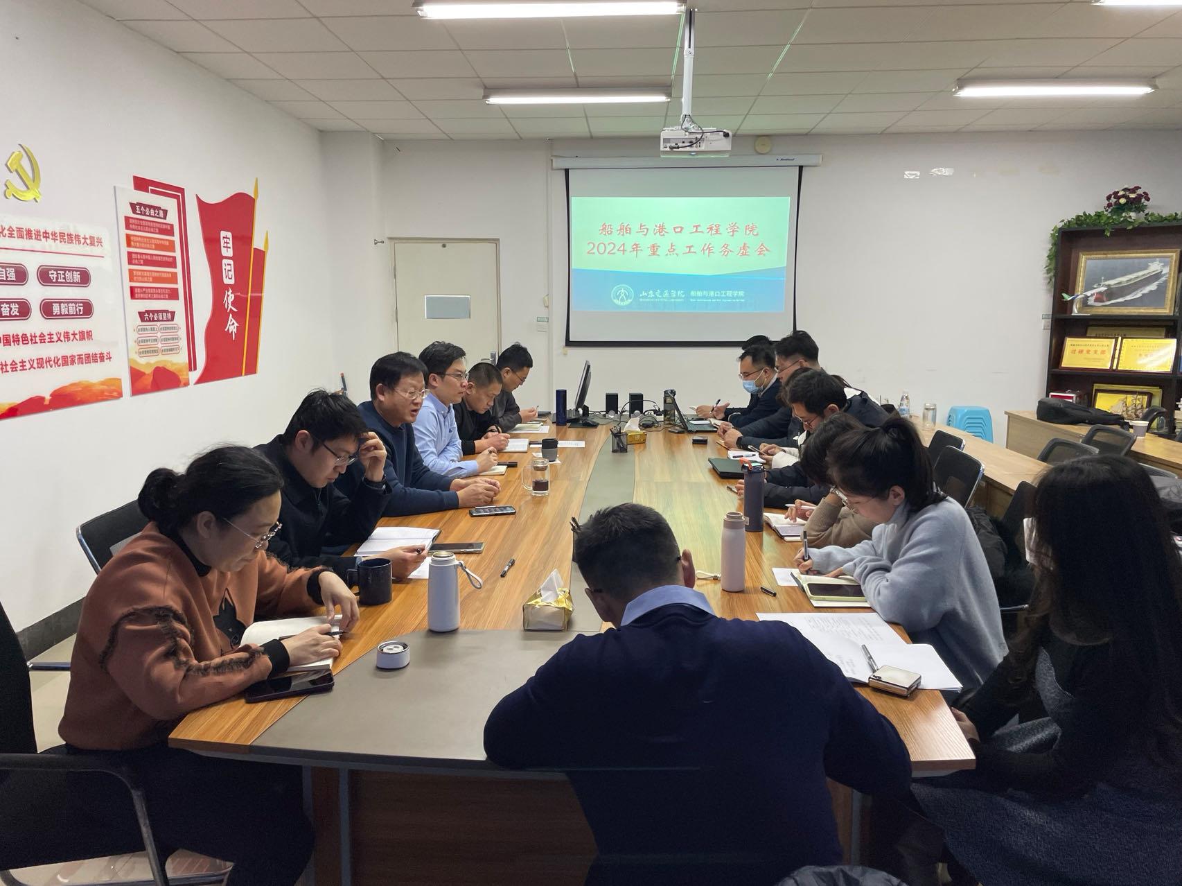 船舶与港口工程学院召开2024年重点工作务虚会。会上,学院院长李光正详细解读了学院2024年重点工作;学院各系(部)负责人就本领域重点工作汇报交流,大家谈成绩、谈问题、谈目标、谈思路、谈举措、谈建议,以务虚求务实,进一步统一思想、凝聚共识、明确任务、激励斗志。学院党委书记隋翀作总结讲话,他强调,过去的一年,在学校党委行政的领导下,学院各项工作亮点纷呈、收获满满;新的一年,大家要锚定高质量发展目标任务,高标杆、细谋划、早部署,务虚求实、奋楫向前,做到开好局起好步,为学校建设发展贡献力量。