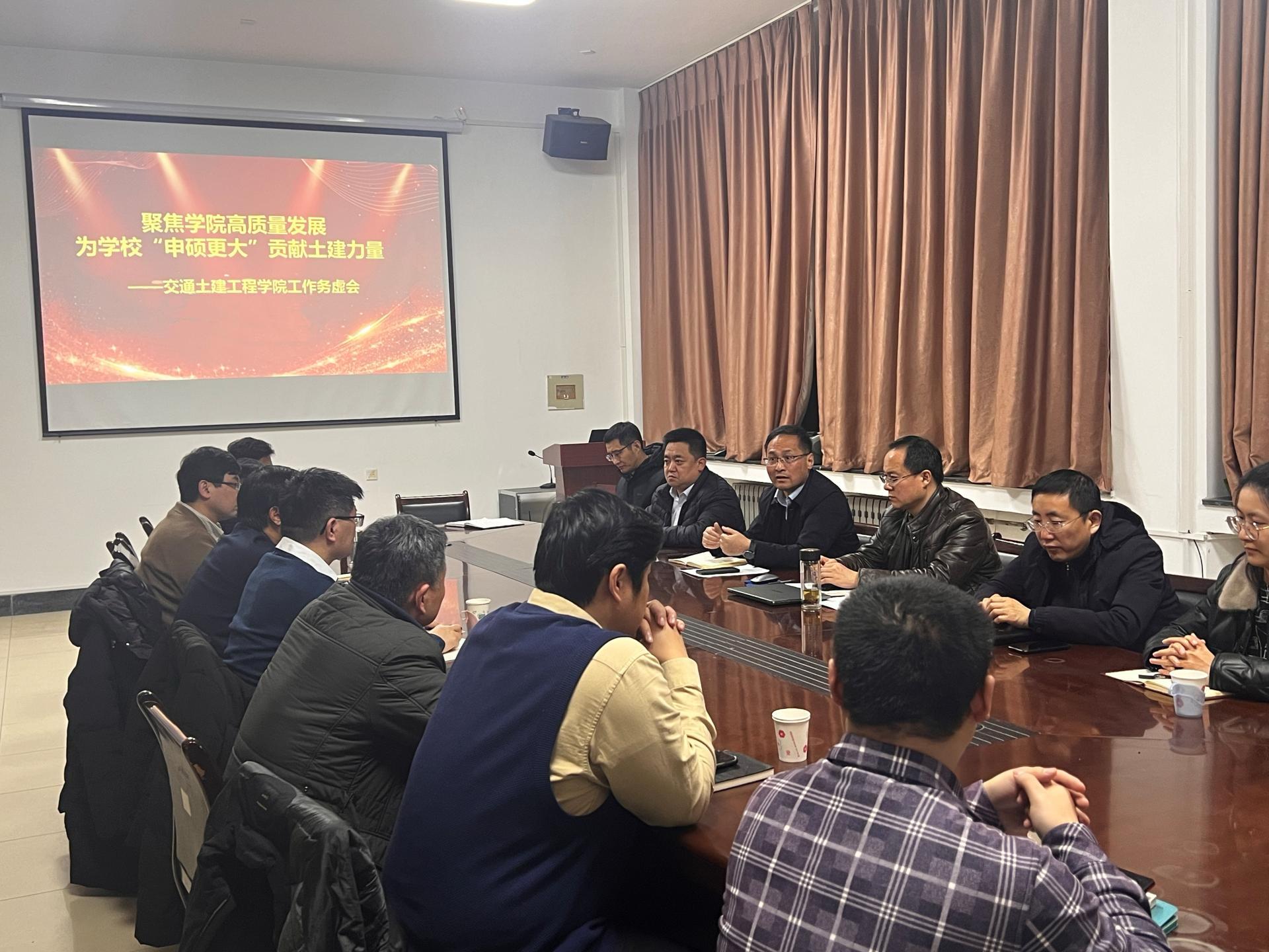 交通土建工程学院在长清校区土木楼B304会议室召开2024年工作务虚会。学院党委领导班子、各系(部)负责人参加会议,学院党委书记滕怀国主持会议。会议以“聚焦学院高质量发展,为学校‘申硕 更大’贡献土建力量”为主题,各系(部)负责人重点围绕学科及学位点建设、“两金”项目申报、专业建设和人才培养等方面谈思路、找差距、献良策,通过数字和事例详细汇报了2023年任务目标完成情况和2024年工作计划;学院党委领导班子成员围绕各自分管领域,认真分析形势、确定目标、谋划思路。滕怀国作会议总结,他指出,此次务虚会思想统一得很齐、情况了解得很透、短板查找得很准、措施提出得很实,以虚务实、以实促虚,集众能、凝众力,高质量谋划了下一阶段学院的发展方向。他要求,全院上下要以此次会议为契机,主动聚焦学校高质量发展,蓄势而发、乘势而上,定好“时间表”,画好“路线图”,全面推进学院事业高质量发展,为学校事业发展贡献土建力量。