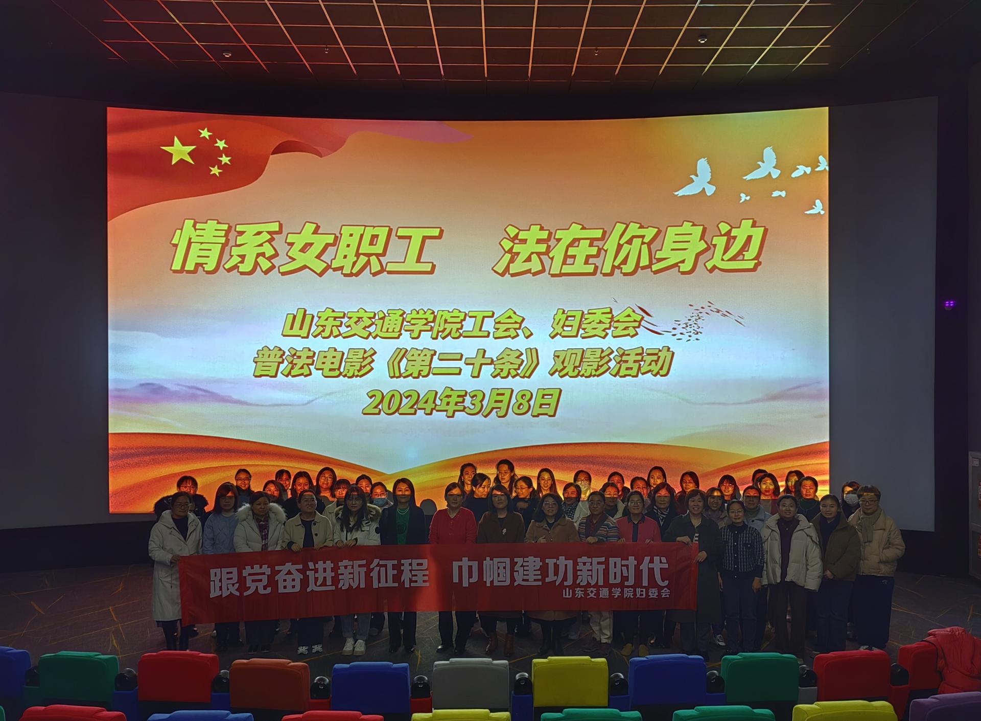 活动组织女教职工及女学生代表前往长清大学城万达影城、威海开乐影城观看普法电影《第二十条》。观影过程中大家笑中带泪、触动颇深,对“法不能向不法让步”的司法理念有了更深刻的理解,大家纷纷表示,通过此次观影活动增强了法治意识,在今后的工作中要自觉学法、懂法、用法、守法,不断提升自己的法治素养和道德水平,为助力学校高质量发展贡献智慧和力量。