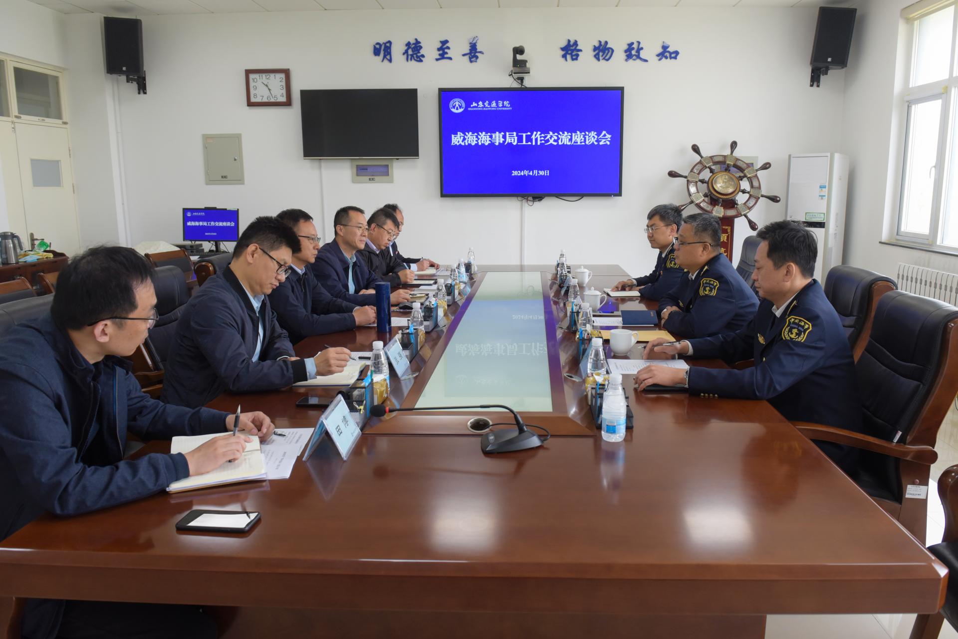 4月30日,威海海事局党委委员、副局长黄斌一行到我校威海校区交流座谈。学校党委委员、副院长曲同军出席活动。