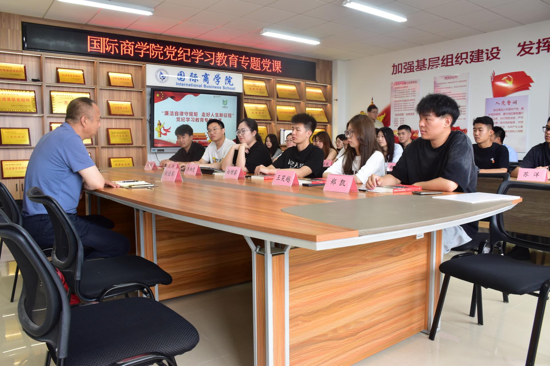 国际商学院党委书记刘佳军为全体毕业生党员讲授纪律党课。他以“廉洁自律守规矩 走好人生新征程”为题,结合历史典故和警示案例,深入浅出地阐述了廉洁自律的重要性。他指出,作为新时代青年党员,要时刻保持清醒的头脑,自觉遵守党的纪律规矩,在未来的工作和生活中坚定理想信念,为实现中华民族伟大复兴的中国梦贡献青年力量。