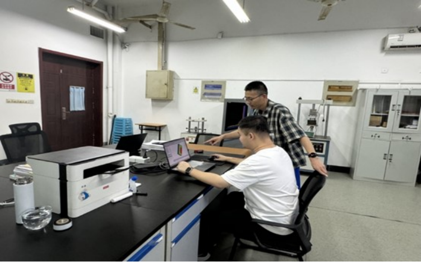 学院陈仁山副教授带领团队开展相变材料用于大体积混凝土调温应用技术研究项目,在实验室指导研究生进行混凝土热应力模拟分析。