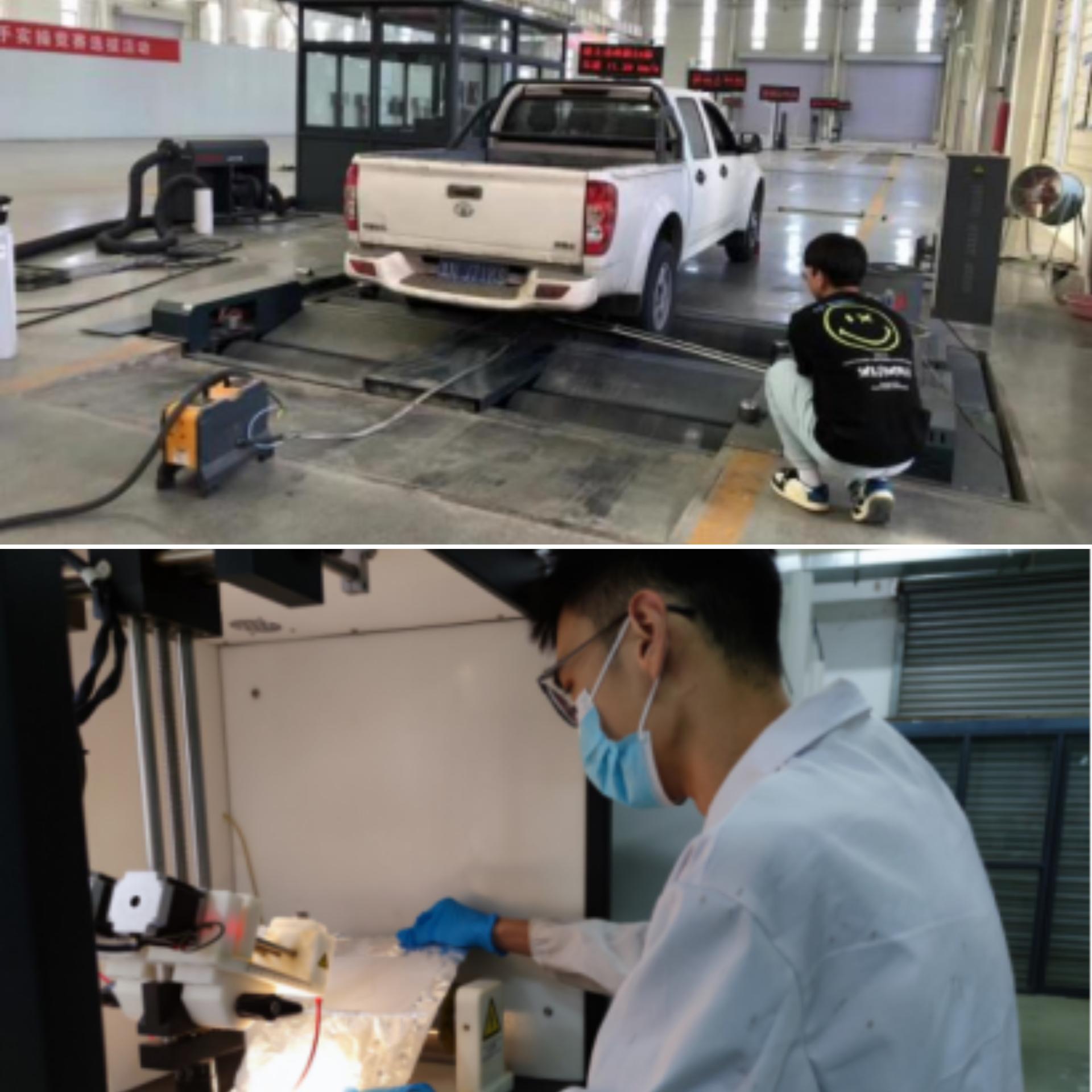 汽车工程学院汽车综合性能检测技术研发团队的李震宇、张鸿滔在德州新凌志进行机动车尾气净化诊断相关实验,通过优化改进机动车后处理装置的机外使用功效,旨在解决机动车检测过程中超标排放污染问题;王岩在工程中心F109新能源材料实验室专注于锂电池高压电极改性实验,通过静电纺丝技术,制备锂电池复合正极材料的纳米纤维膜,旨在显著提升锂电池复合正极材料在高压条件下的稳定性。