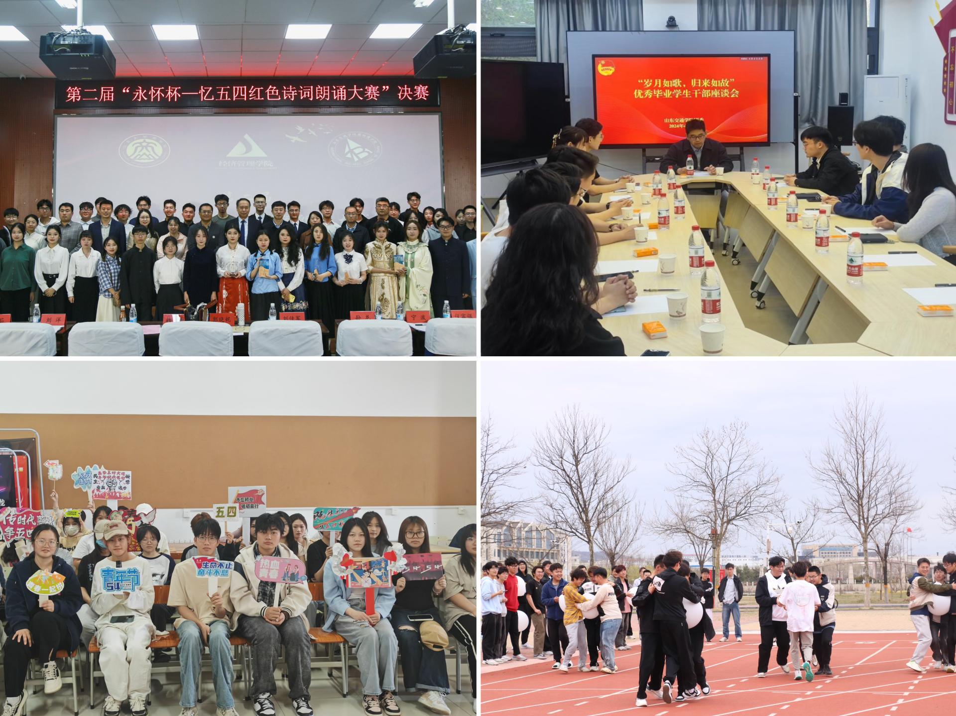 唱响时代赞歌,展现青春风采。各单位(部门)组织开展丰富多彩的活动,在寓教于乐中凝聚奋进力量。国际商学院与山东大学(威海)、哈尔滨工业大学(威海)联合举办第二届“永怀杯——忆五四红色诗词朗诵大赛”决赛,艺术与设计学院开展“声悦五四 情寄爱国”主题朗诵活动,在铿锵有力、抑扬顿挫的朗诵中展现新时代青年的爱国情怀和理想抱负;学校团委开展读书分享会及优秀毕业生座谈会,引导学生从书籍和朋辈榜样中汲取学习经验和生活智慧;航运学院开展“寸心寄华夏,五四漾韶华”活动,通过模拟红军长征和中国革命事业的艰辛路程,引导学生在学思践悟中汲取奋进力量;交通土建工程学院、交通与物流工程学院、艺术与设计学院分别开展五四青年节主题手抄报评比、手举牌设计比赛等活动,激发青年学生的爱国热情和创新创造意识。