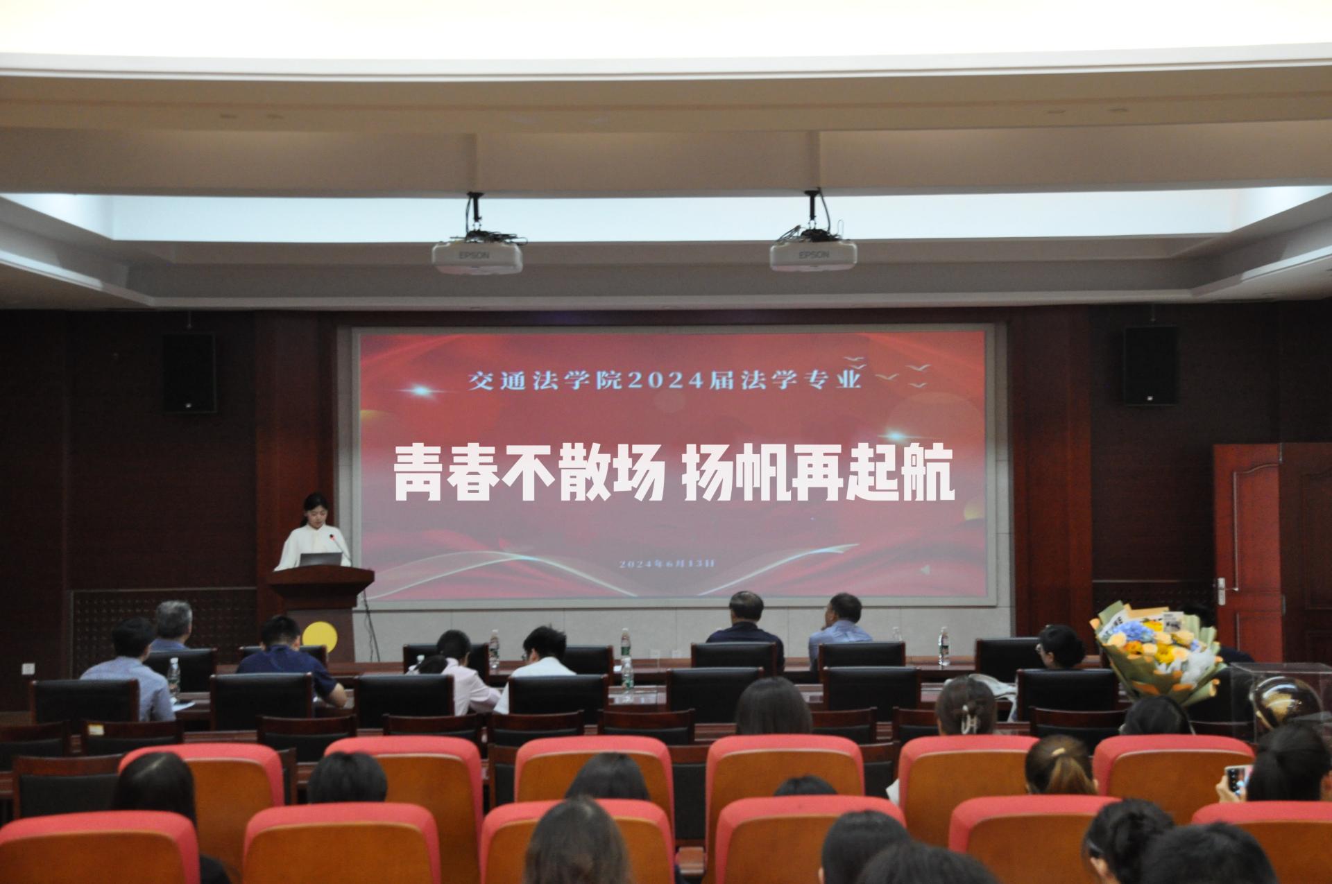 交通法学院在工程训练中心开展“青春不散场 扬帆再起航”欢送2024届法学专业毕业生活动,学院党委领导班子、教师代表及2024届全体毕业生参加。学院党委书记闫淼为优秀毕业生代表颁发荣誉证书;院长范冠峰寄语2024届毕业生,期望同学们能够坚定梦想和信仰,为祖国的法治事业作出贡献;教师代表、在校生代表为毕业生送上临别祝福。大家共同观看了毕业季宣传片,共忆校园美好时光。