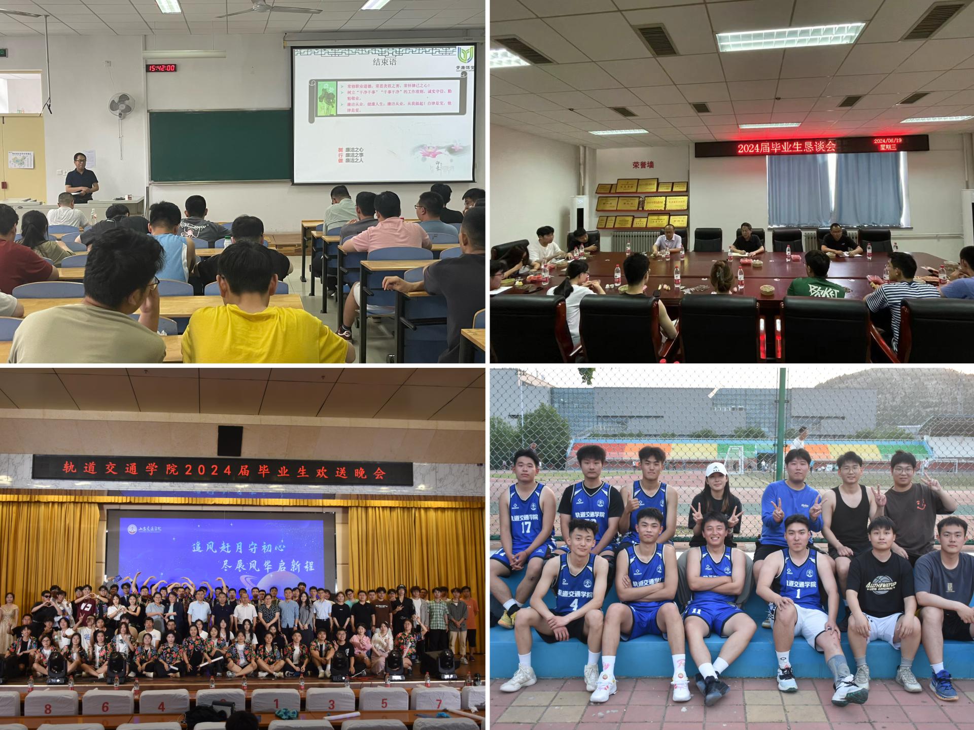 轨道交通学院开展毕业季系列活动。开展“同上一堂廉洁文化课”活动,学院党委书记单立功以“坚守初心使命 牢记政治规矩意识”为题,引导全体毕业生自觉遵守国家法律法规,树立和践行社会主义核心价值观,不断加强道德修养、明辨是非曲直,奋力书写为中国式现代化挺膺担当的青春篇章;举办2024届毕业生恳谈会,学院师生结合工作学习情况,畅所欲言、共话情谊;举办2024届毕业生欢送晚会、“毕业杯”篮球赛等文体活动,激励毕业生在新的人生道路上勇往直前、追求卓越。