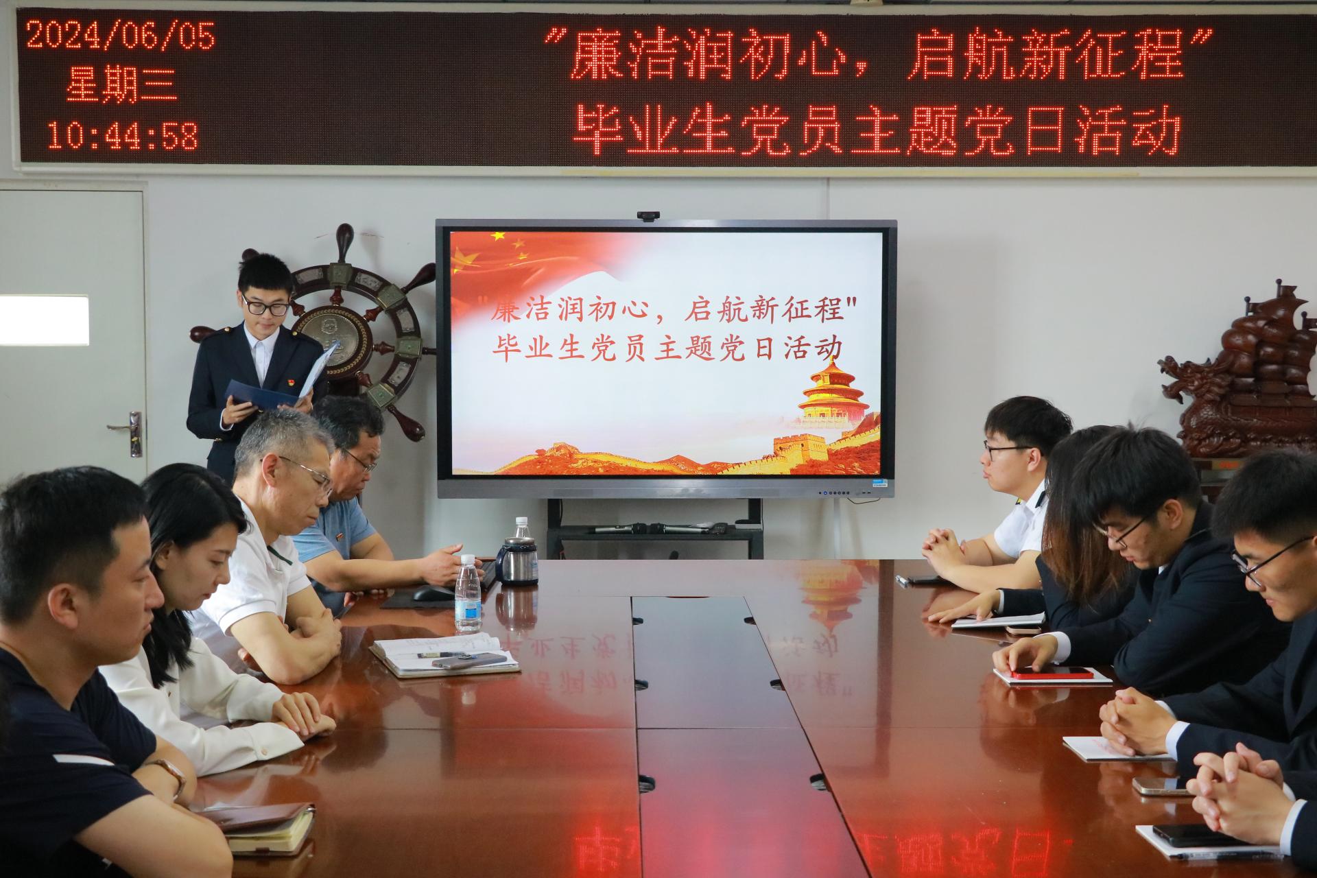 航运学院党委开展“廉洁润初心,启航新征程”主题党日活动。学院党委书记陈海泳以《筑牢思想防线 严守纪律底线》为题为毕业生党员讲授纪律党课,他从《中国共产党纪律处分条例》的历史沿革、修订背景、重要意义、重点条文四个方面进行解读,引导毕业生党员把遵规守纪刻印在心,内化于行;学院党委副书记杜强为毕业生党员送上美好祝福,鼓励他们以饱满的热情投入新的学习和工作中;各学生党支部书记为毕业生党员赠送书籍;与毕业生党员开展座谈,深切表达对学院和老师的感激之情。