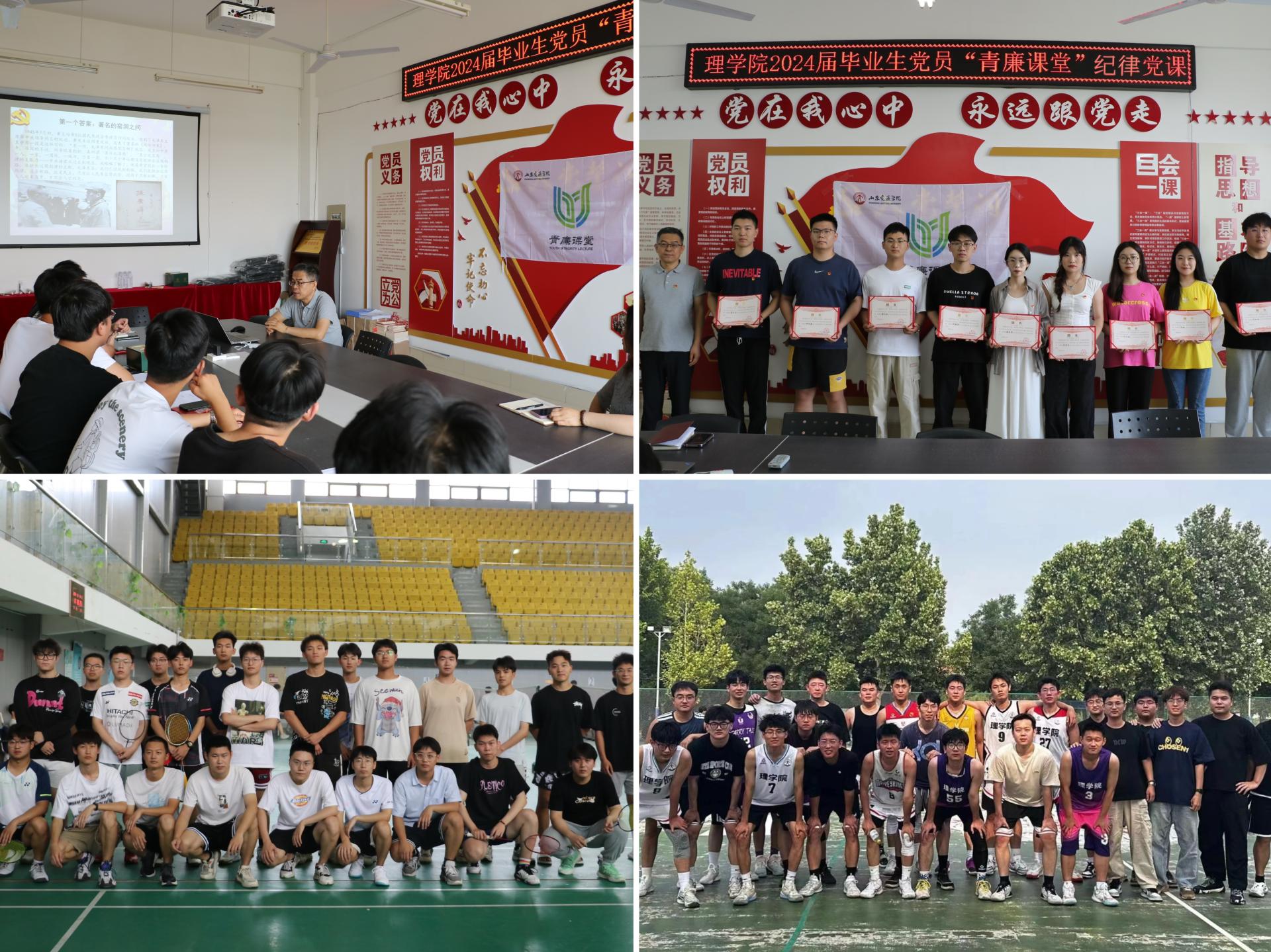 理学院开展2024年毕业季系列活动。开展“青廉课堂”暨讲纪律党课活动,学院党委书记单宝森为毕业生党员代表讲授纪律党课,他勉励大家要以更加饱满的热情投入到下一阶段的学习工作中,以过硬本领为中华民族伟大复兴贡献青春力量;举办毕业生“青羽杯”羽毛球赛和篮球友谊赛,鼓励毕业生发扬积极向上、团结协作、努力拼搏的优秀品质,在未来的人生道路上砥砺奋进,积极投身于强国建设伟大征程。