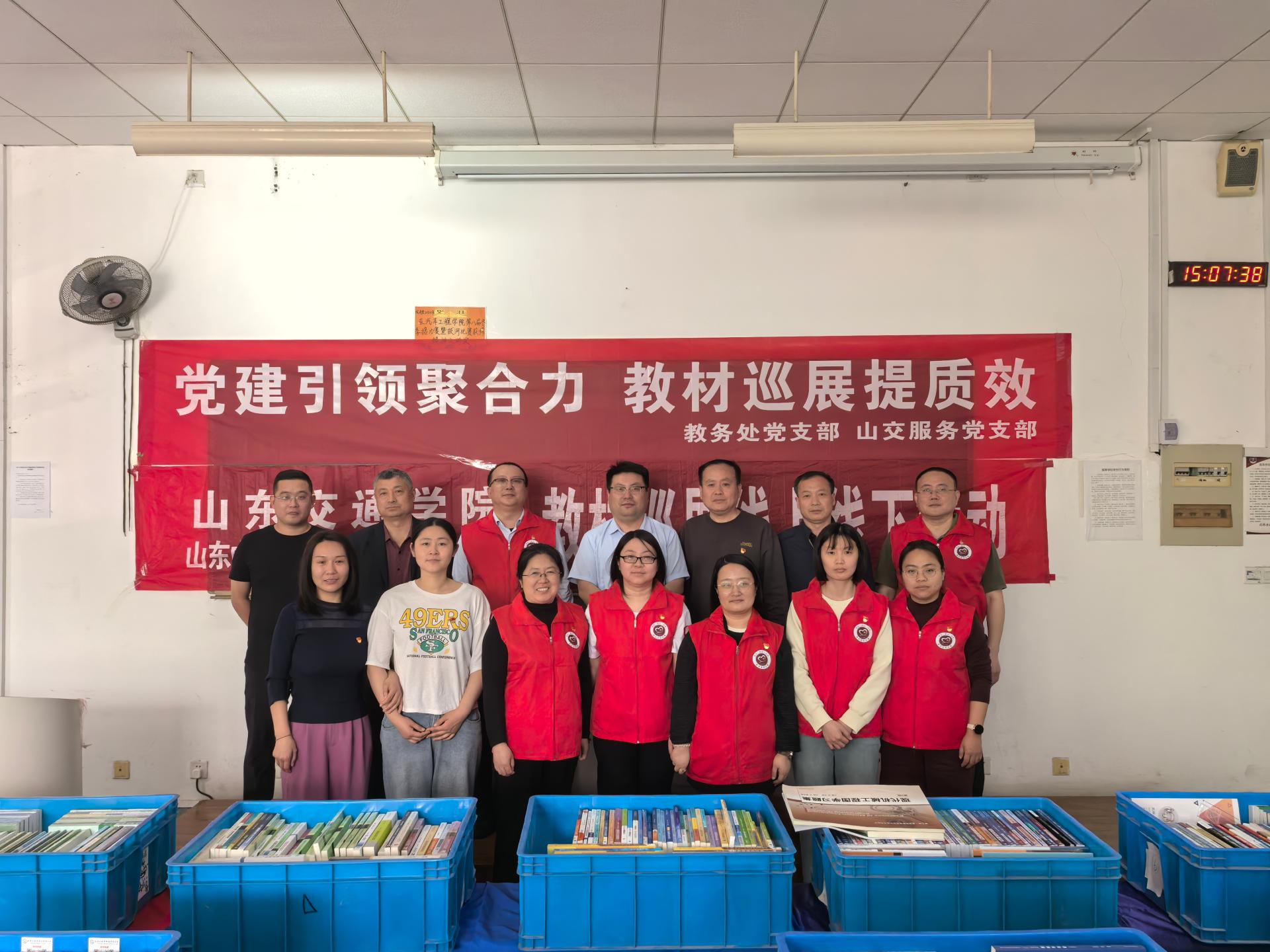 近日,教务处党支部和山交教育咨询有限公司党支部在长清校区1号教学楼共同举办教材巡展活动。