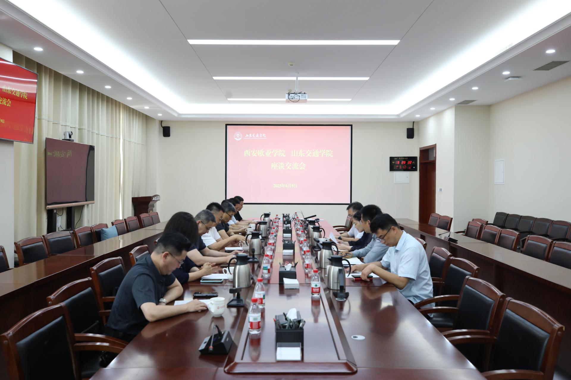 6月9日上午,西安欧亚学院董事长胡建波一行8人来校交流座谈。学校党委书记王伟会见胡建波一行。党委委员、副院长徐静出席并主持座谈会。