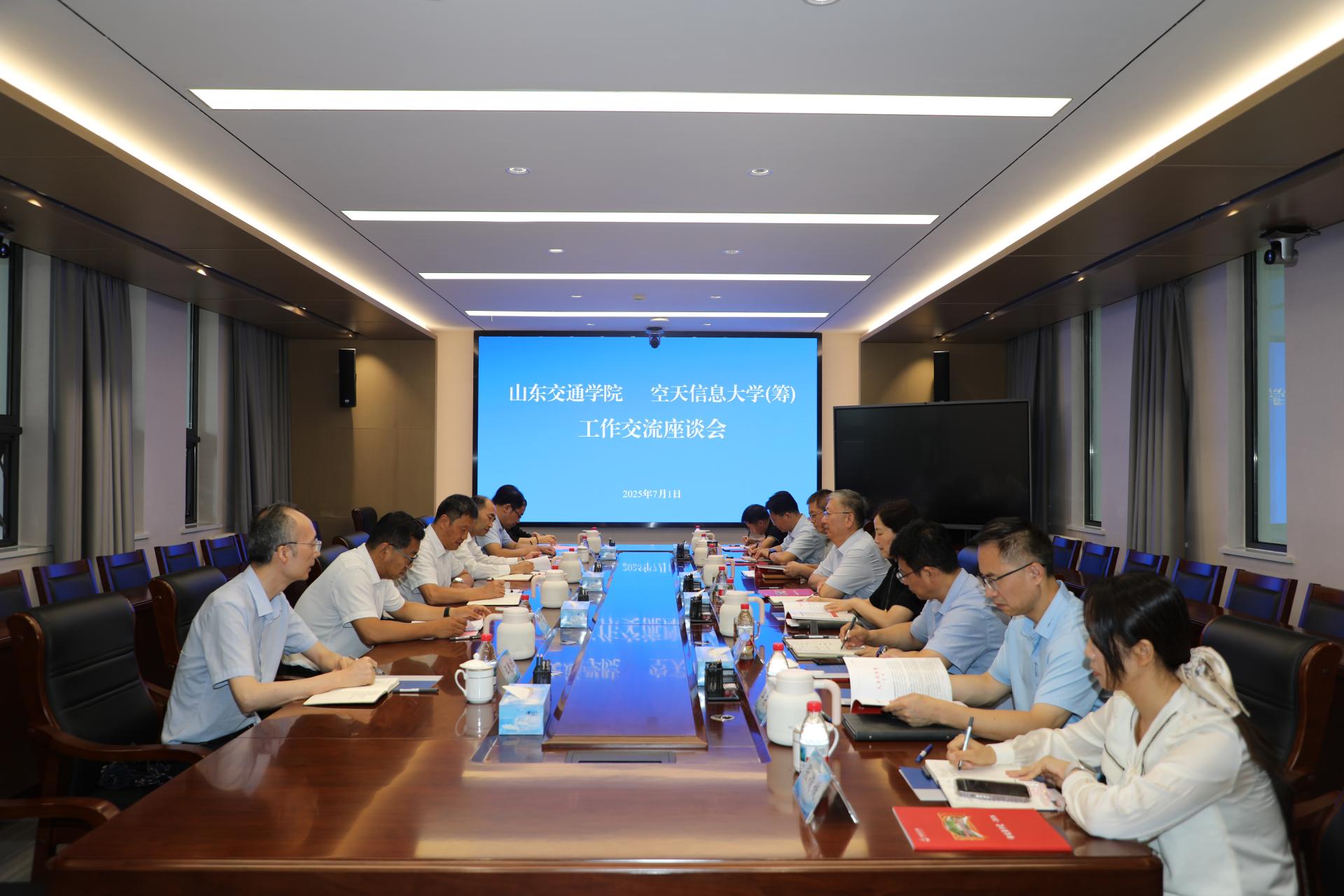 7月1日,学校党委书记王伟,党委副书记、院长孔伟金带队到空天信息大学(筹)和山东工程职业技术大学开展调研走访,共商校际合作新模式。