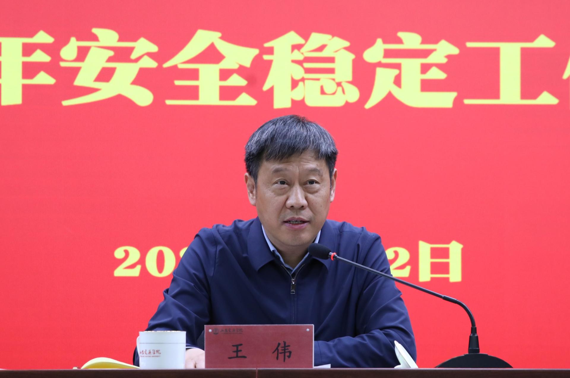 王伟就进一步做好学校安全稳定工作提出三点具体要求。一要提高政治站位,把安全稳定工作摆在更加突出位置,强化战略思维、底线思维和忧患思维。二要健全制度明确责任,建立安全管理工作长效机制,确保闻令而行,依令而动,全程落实。三要聚焦重点狠抓落实,着眼重点领域、关键部位,全面排查整治各类隐患,防范化解重大风险。