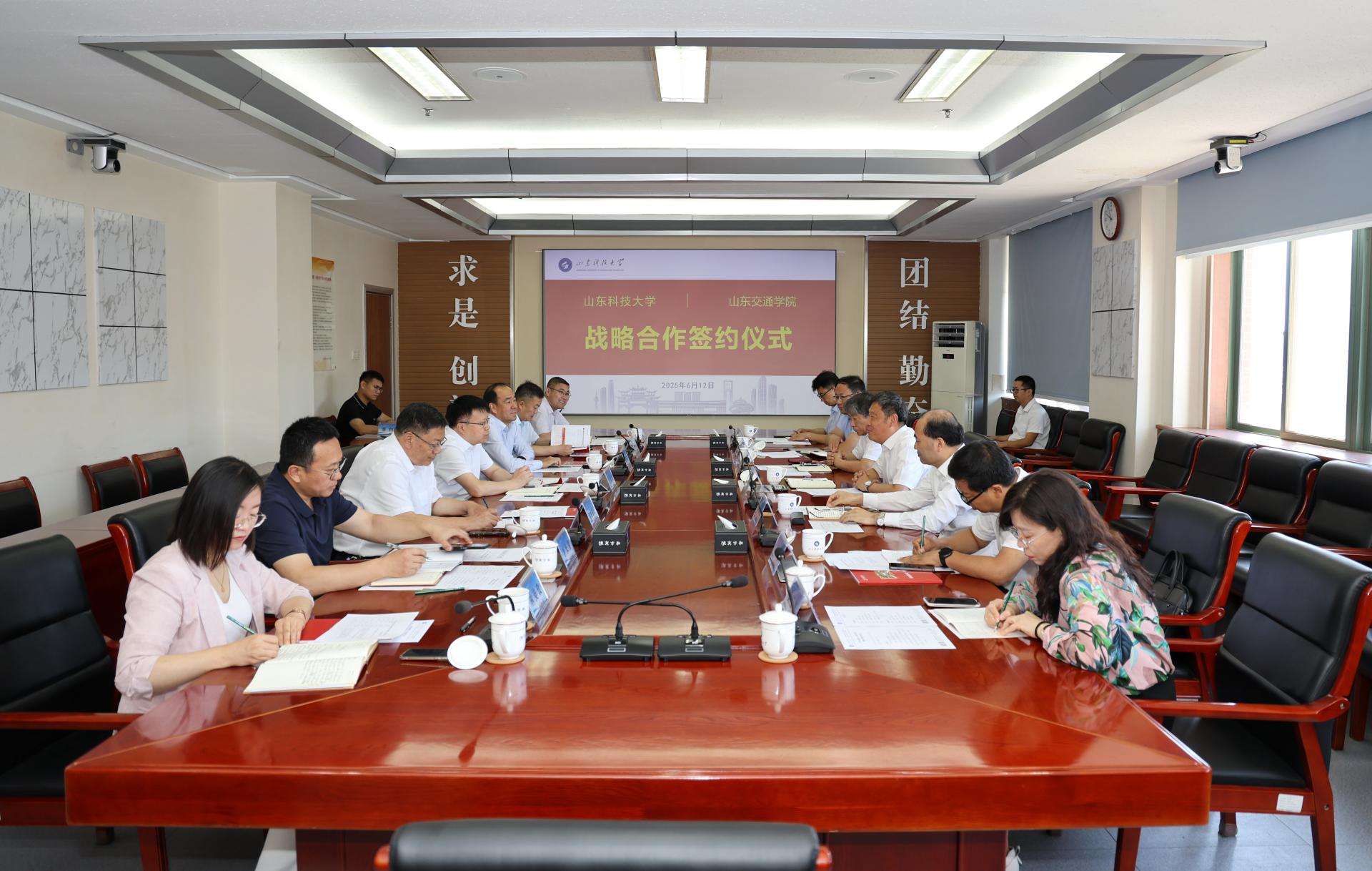 12日上午,王伟一行赴山东科技大学座谈交流并签订战略合作协议。